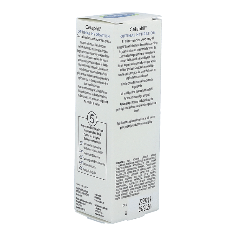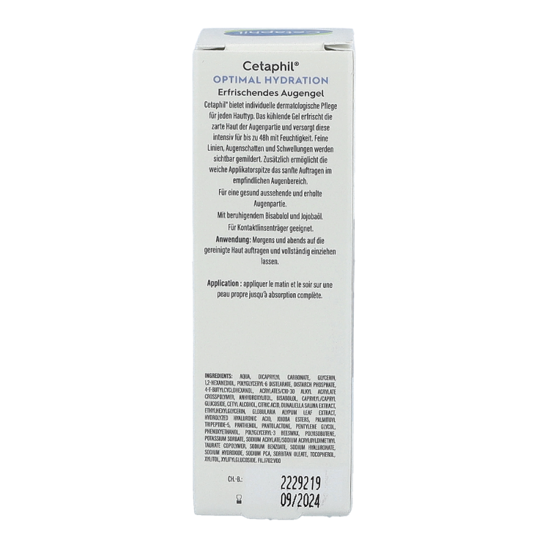 Das kühlende Gel erfrischt die zarte Haut der Augenpartie und versorgt diese intensiv für bis zu 48h mit Feuchtigkeit. Feine Linien, Augenschatten und Schwellungen werden sichtbar gemildert. Zusätzlich ermöglicht die weiche Applikationsspitze das sanfte Auftragen im empfindlichen Augenbereich. Mit beruhigendem Bisabolol und Jojobaöl. Für Kontaktlinsenträger geeignet.