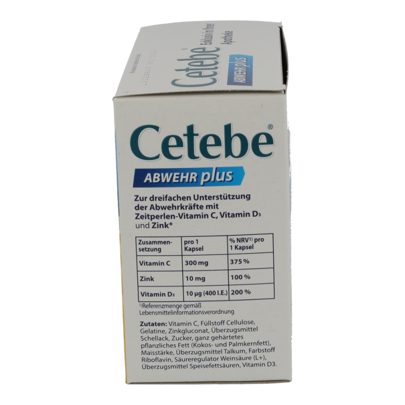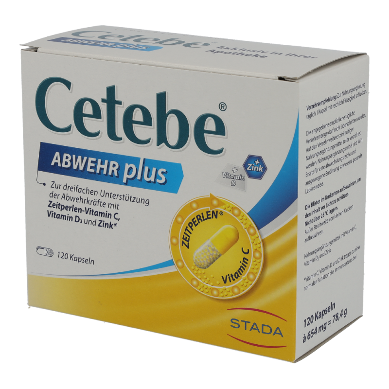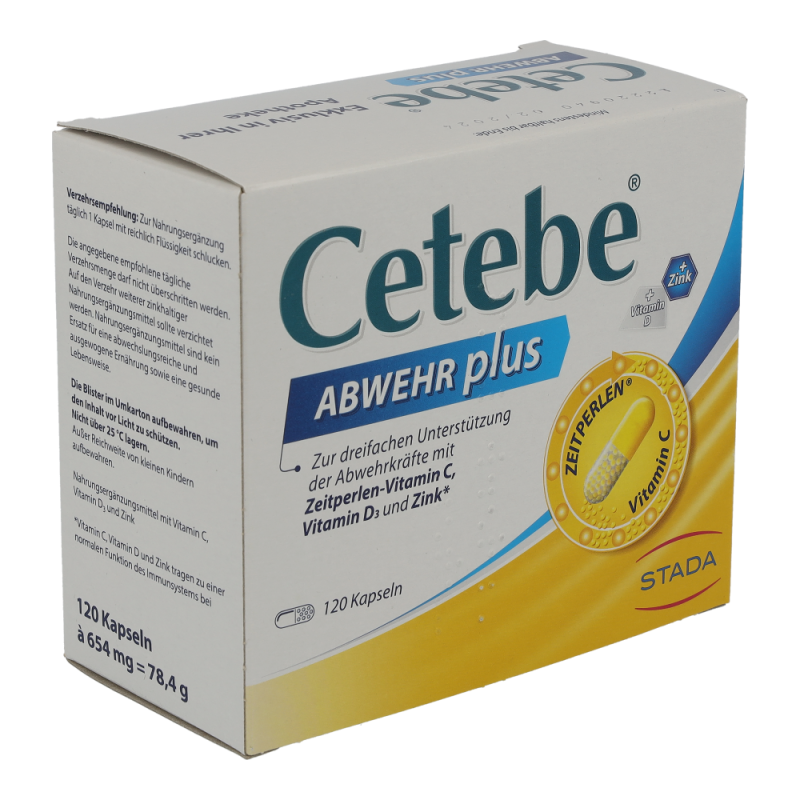 Es gibt Zeiten und Situationen, in denen das Immunsystem besonders gefordert ist. Dann kann Cetebe® ABWEHR plus die Abwehrkräfte sinnvoll unterstützen. Denn mit Vitamin D, Vitamin C und Zink liefert Cetebe® wichtige Vitalstoffe für unser Immunsystem.