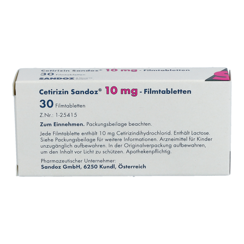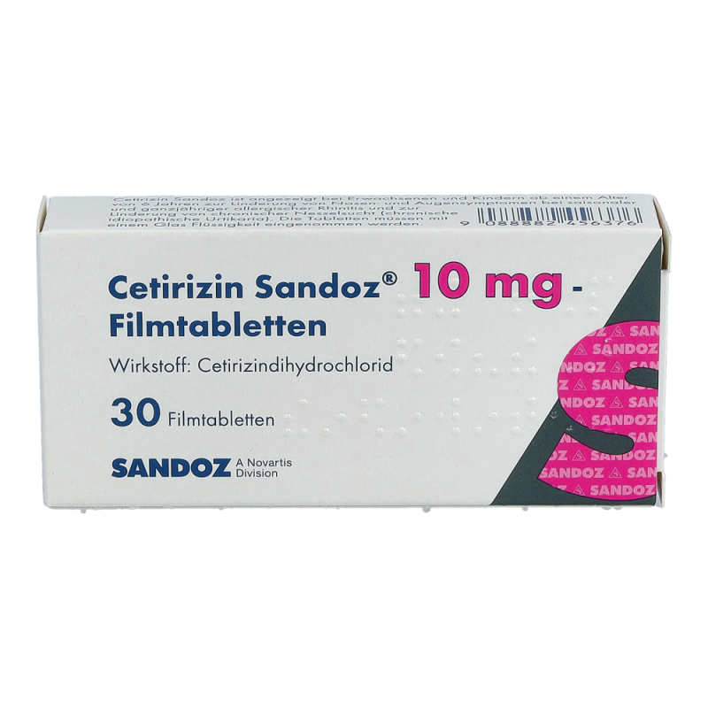 Cetirizin Sandoz 10 mg Filmtabletten ist ein Arzneimittel, das zur Behandlung von Krankheitszeichen (Symptomen) bei allergischen Erkrankungen eingesetzt wird. Cetirizin lindert gezielt Urtikaria/Nesselsucht, Juckreiz, Schwellung der Nasenschleimhaut und tränende Augen, wenn die Symptome durch z.B. Heuschnupfen oder Hausstaubmilben-Allergie ausgelöst werden.