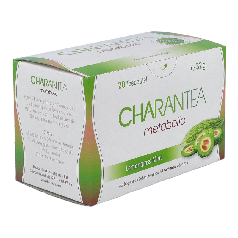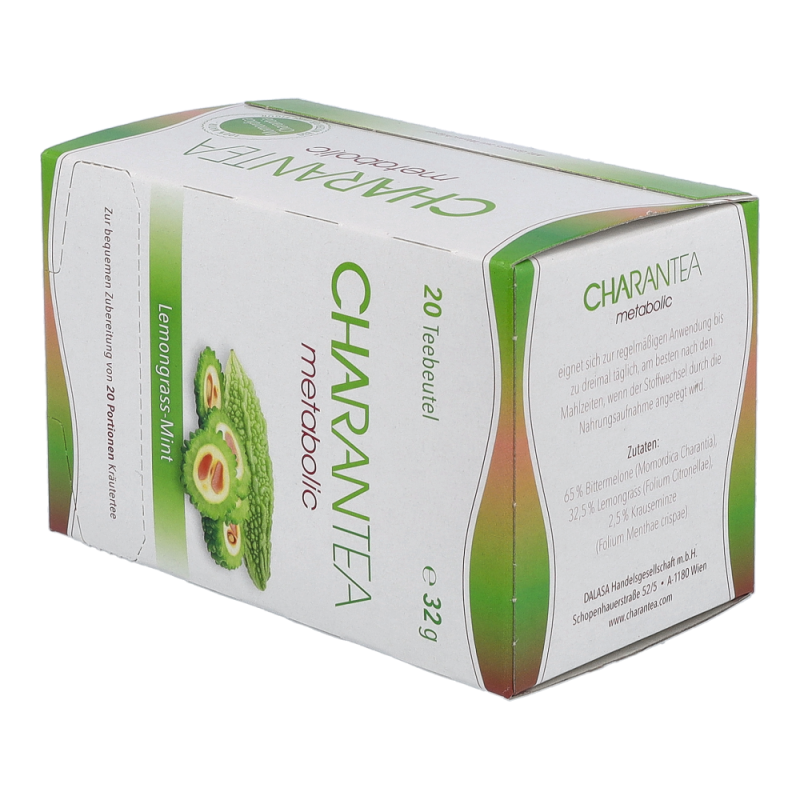 Charantea Metabolic Lemongrass-Mint Tee hilft den Stoffwechseln anzuregen und beugt so Übergewicht auf natürliche Weise vor.