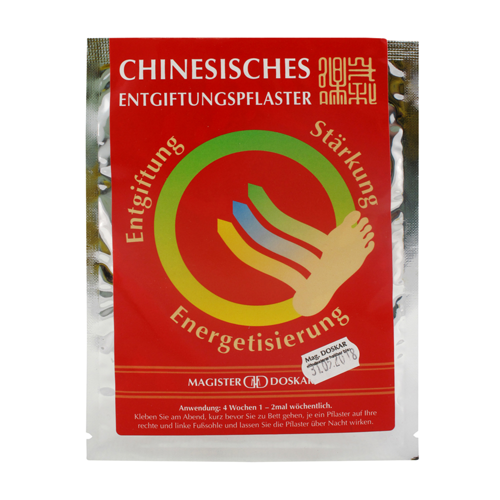Chinesische Entgiftungspflaster von Magister Doskar enthalten ausschließlich reine, natürliche Substanzen von höchster Qualität, vor allem pulverisierter Mandarin Essig sowie Turmalin- und Germanium-Puder. Diese Zutaten unterstützen den Körper bei der Entgiftung und Entschlackung. Sie können auch zur allgemeinen Energetisierung und Stärkung des Körpers beitragen.
