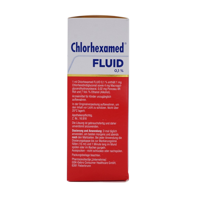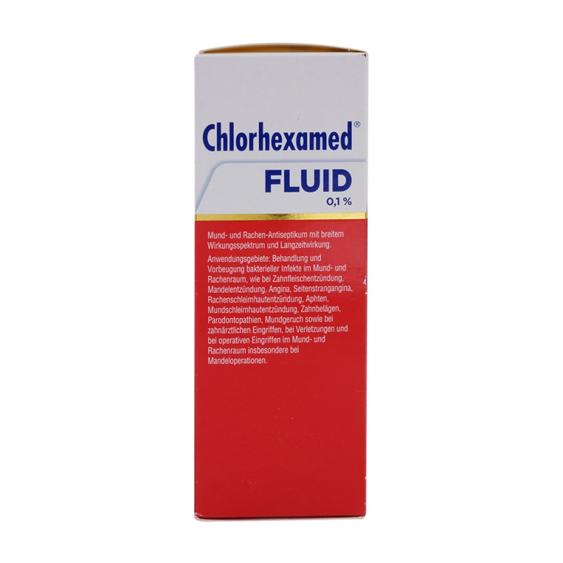 Chlorhexamed Fluid 0,1 % enthält den Wirkstoff Chlorhexidin zur Behandlung von Zahnfleischentzündungen. Es reduziert Bakterien in der Mundhöhle effektiv und hat einen Depoteffekt von über 12 Stunden.