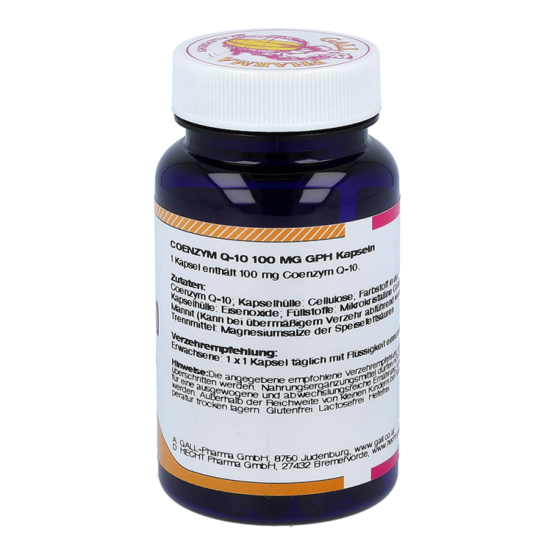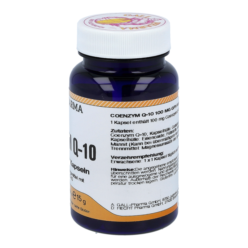Gall Pharma Q10 Coenzym 100 mg Kapseln 60 Stk. enthalten 30 mg Coenzym Q-10 in einer Hartgelatinekapsel. Coenzym Q-10 ist das Anti-Aging Mittel schlechthin und wird von jeder Zelle unseres Körpers benötigt, um die Energieversorgung sicherzustellen. Q10 aktiviert das Immunsystem, stärkt das Herz und die Nerven und steigert sogar die Fettverbrennung.
