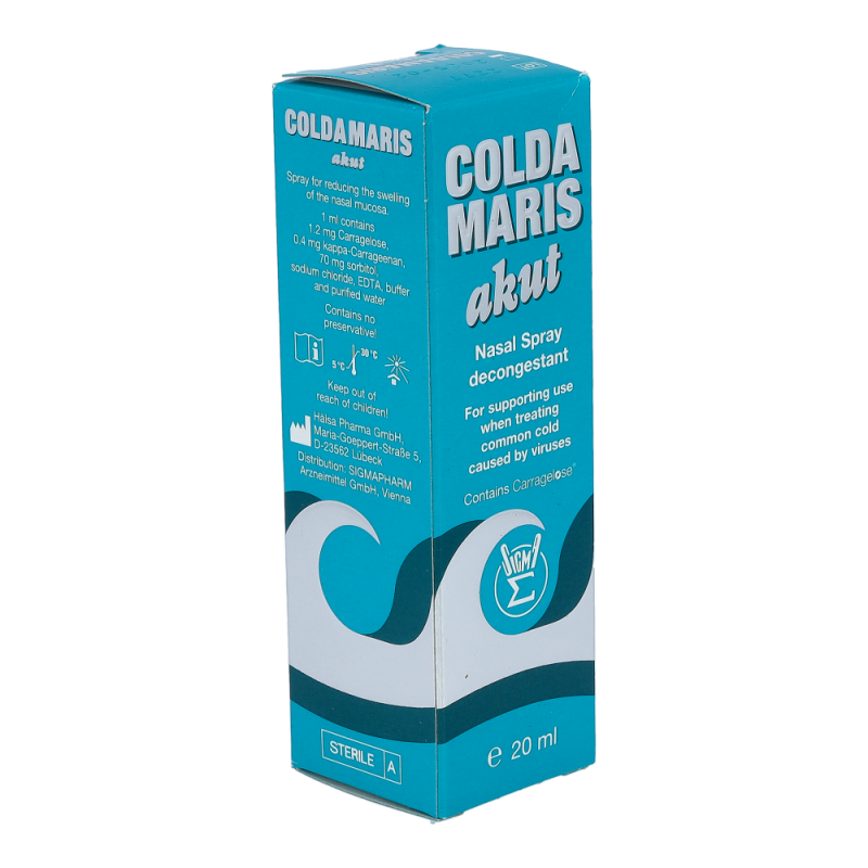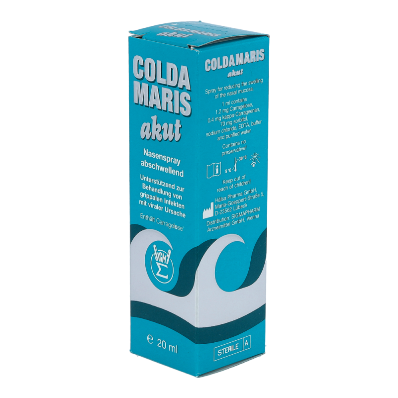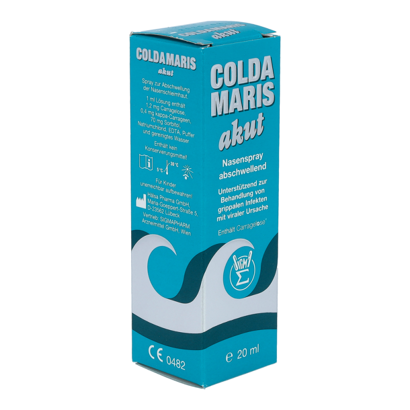 Ein typisches Erkältungssymptom ist die verstopfte Nase, die durch ein Anschwellen der Schleimhaut aufgrund vermehrter Flüssigkeitseinlagerung hervorgerufen wird. Bei Patienten mit Heuschnupfen kann eine Infektion mit Erkältungsviren zu einer Verschlimmerung der allergischen Symptome führen. Auch diese Patienten können von der Mehrfachwirkung von Coldamaris akut profitieren: Die hypertone Lösung entzieht dem Gewebe überschüssige Flüssigkeit, die Nasenschleimhaut kann abschwellen und das Durchatmen wird erleichtert. Die enthaltene Carragelose® bildet einen Schutzfilm auf der Nasenschleimhaut. Dieser Film wirkt als physikalische Barriere gegen äußere Einflüsse, wie das Eindringen von Erkältungsviren. Carragelose® ist ein natürlicher, aus Rotalgen gewonnener Wirkstoff.