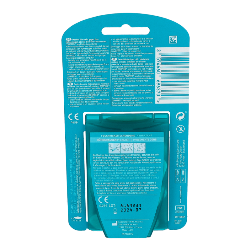 COMPEED® Hühneraugen bietet die bewährte Heilwirkung der feuchten Wundheilung und trägt zur Auflösung des Hühnerauges bei.