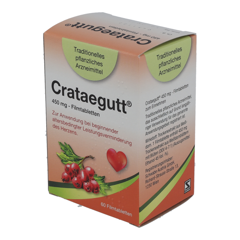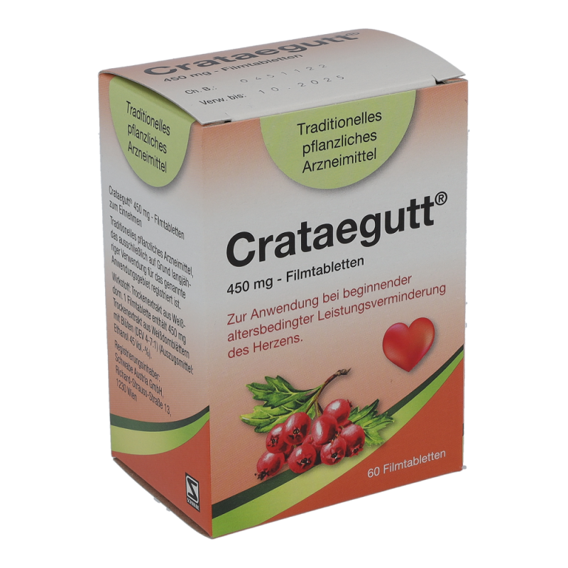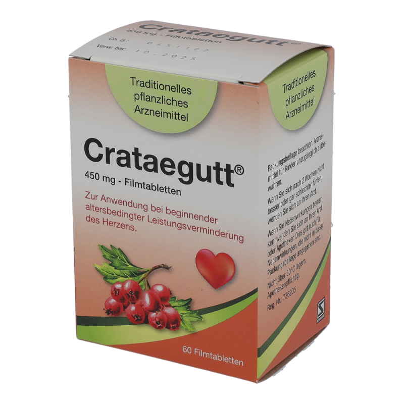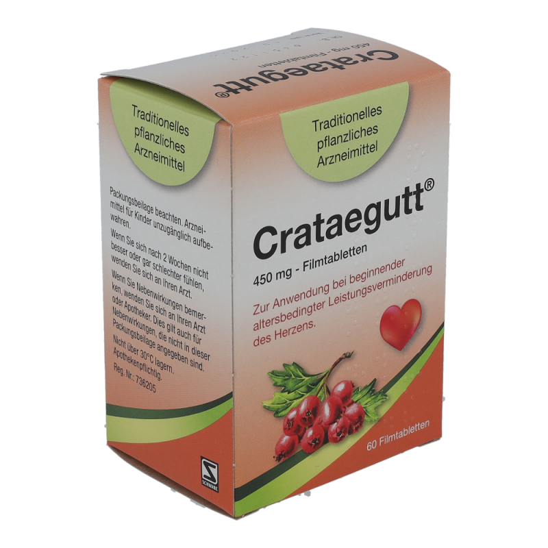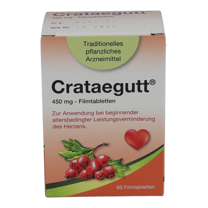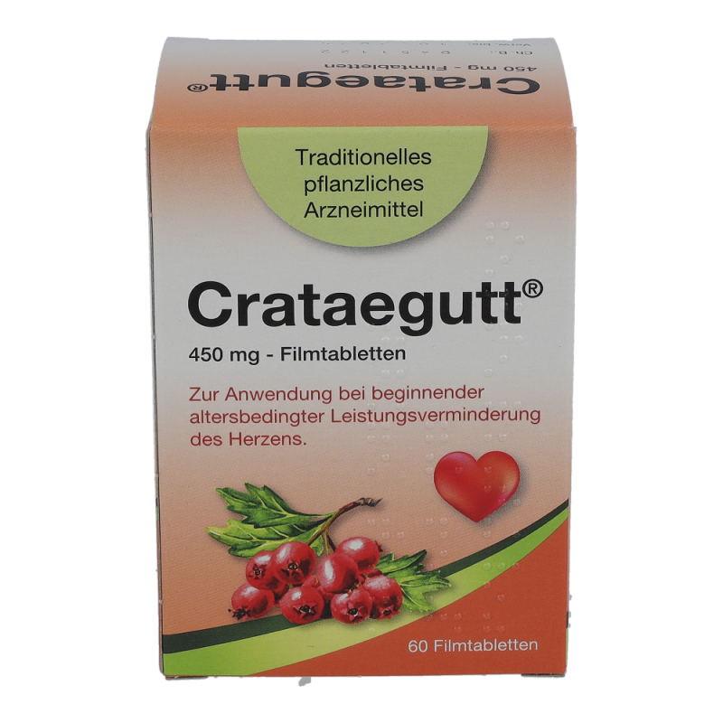 Crataegutt 450 mg Filmtabletten sind ein traditionelles pflanzliches Arzneimittel zur Anwendung bei beginnender altersbedingter Leistungsverminderung des Herzens mit Symptomen wie Abgeschlagenheit und Müdigkeit bei Belastung.