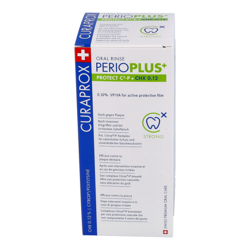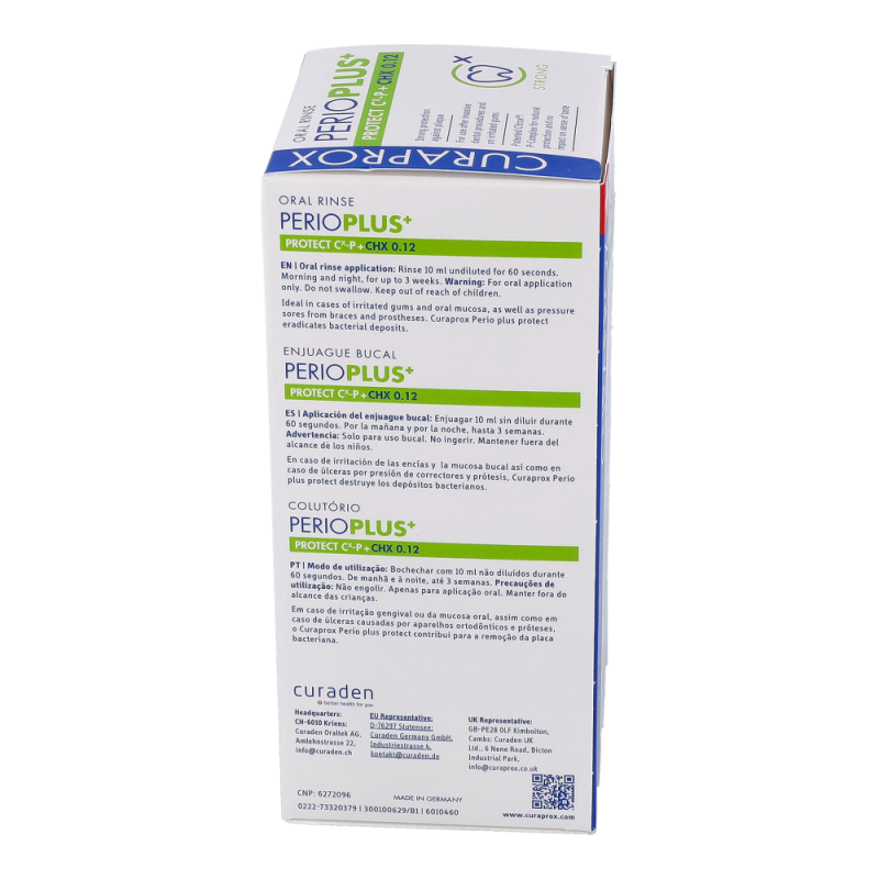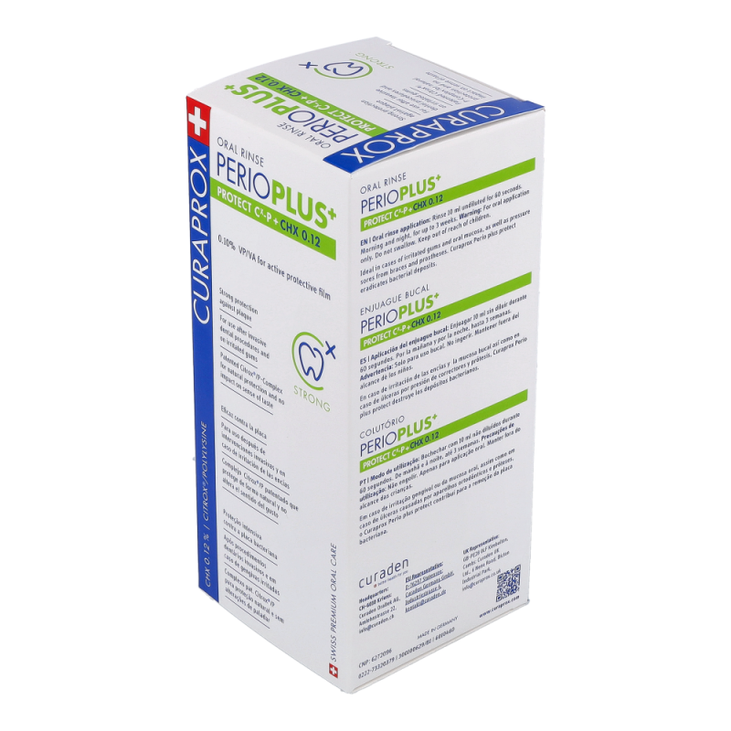 Curaprox Perio Plus+ Protect mit 0.12% Chlorhexidin-Konzentration ist die ideale Mundspülung zur antibakteriellen Unterstützung im Falle von Gingivitis, Parodontitis oder anderen oralen Erkrankungen.