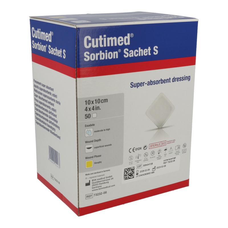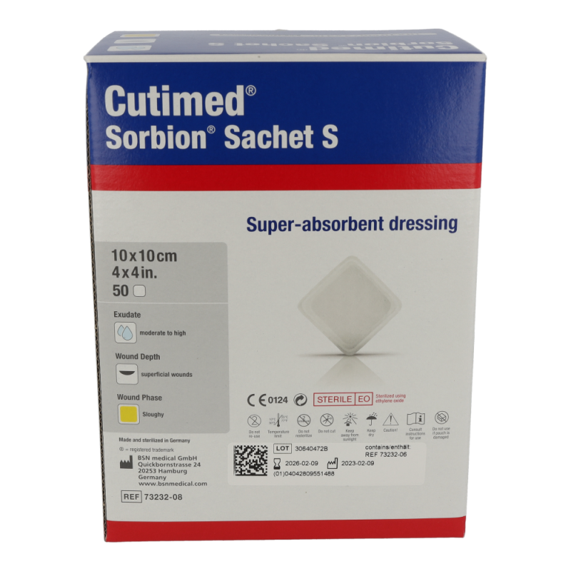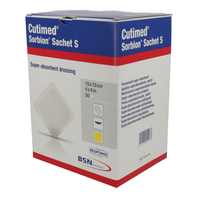 Cutimed Sorbion Sachet S Wundauflage 50 Stk. 10 x 10 cm ist ein superabsorbierender Primärverband für chronische Wunden. Cutimed® Sorbion® Sachet S nimmt schädliche Flüssigkeit auf und schließt diese im Inneren des Produktes ein und ermöglicht einen besonders effektiven Schutz des Wundrandes ebenso wie des Wundgrundes
