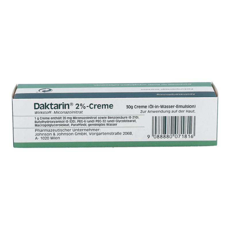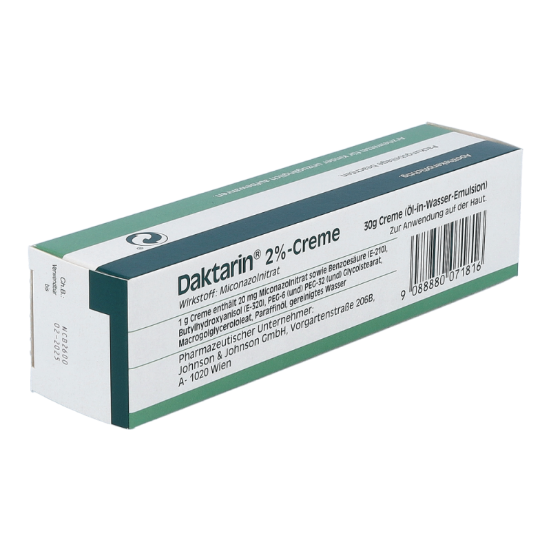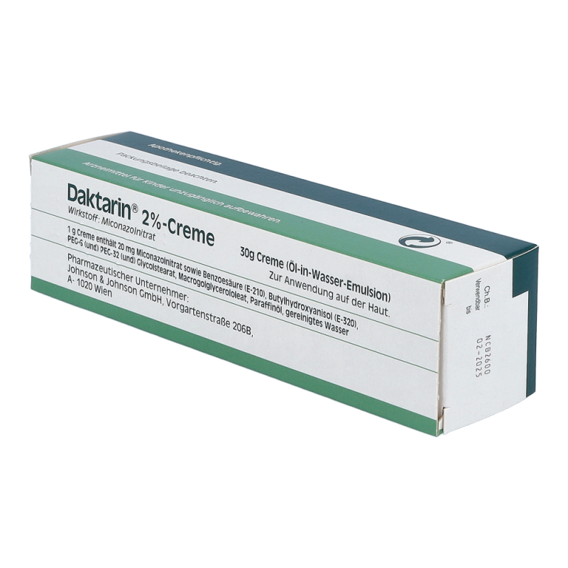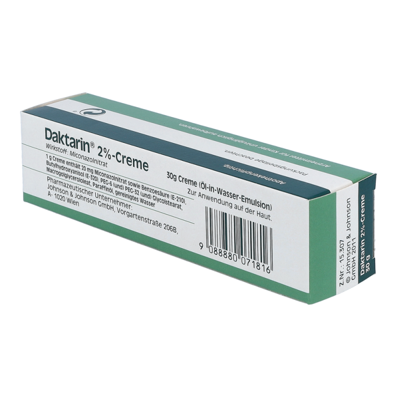 DAKTARIN 2% – Creme ist ein synthetisches Antipilzpräparat. Es hemmt das Wachstum und die Vermehrung von Pilzen, die beim Menschen Haut- und Schleimhauterkrankungen verursachen.