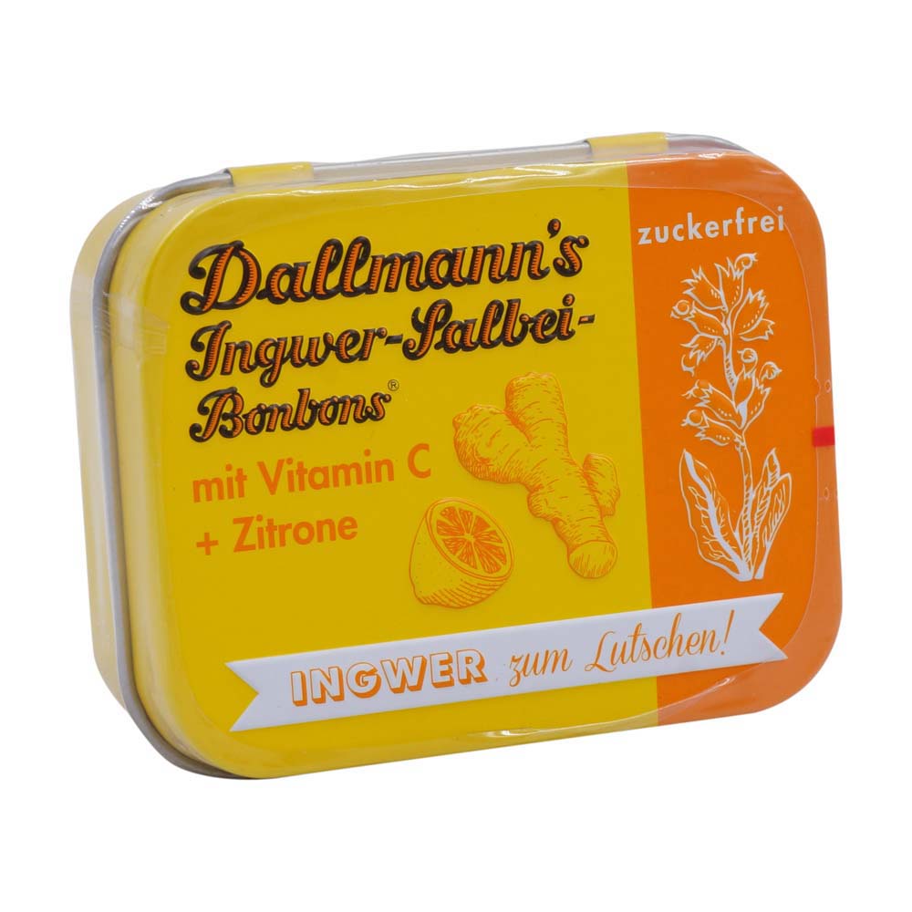 Dallmann´s Ingwer-Salbei Bonbons ohne Zucker – Die Kombination aus würzigem Ingwer, säuerlich erfrischendem Salbei und Zitrone verspricht ein wohltuendes Geschmackserlebnis.