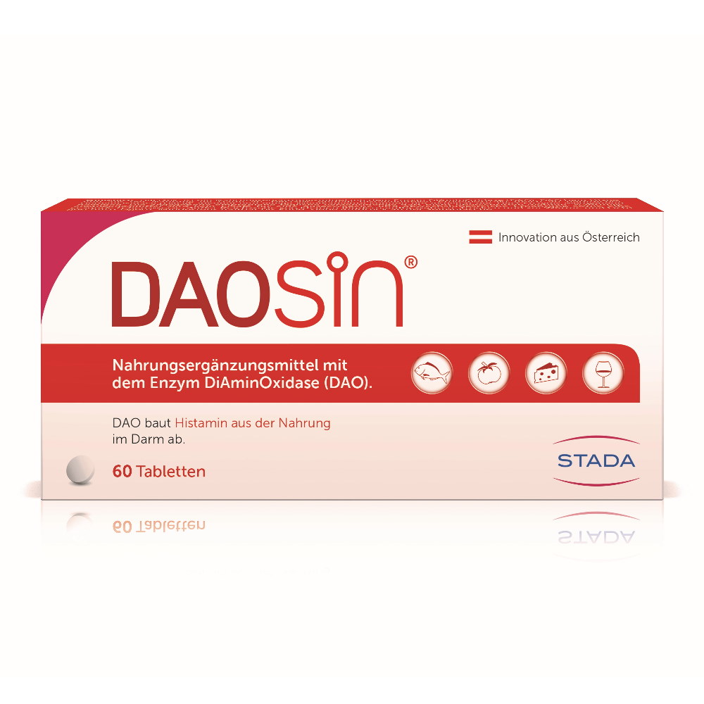 Mit DAOSIN® kann fehlende oder zu geringe DiAminOxidase ergänzt werden. DAOSIN® ist ein qualitativ hochwertiges und einfach anzuwendendes Nahrungsergänzungsmittel.