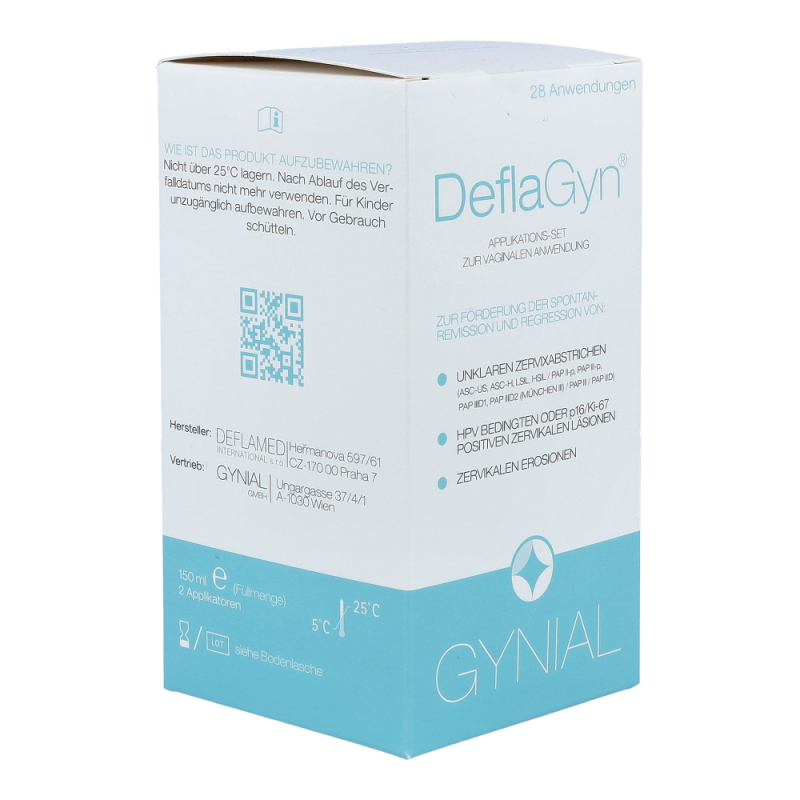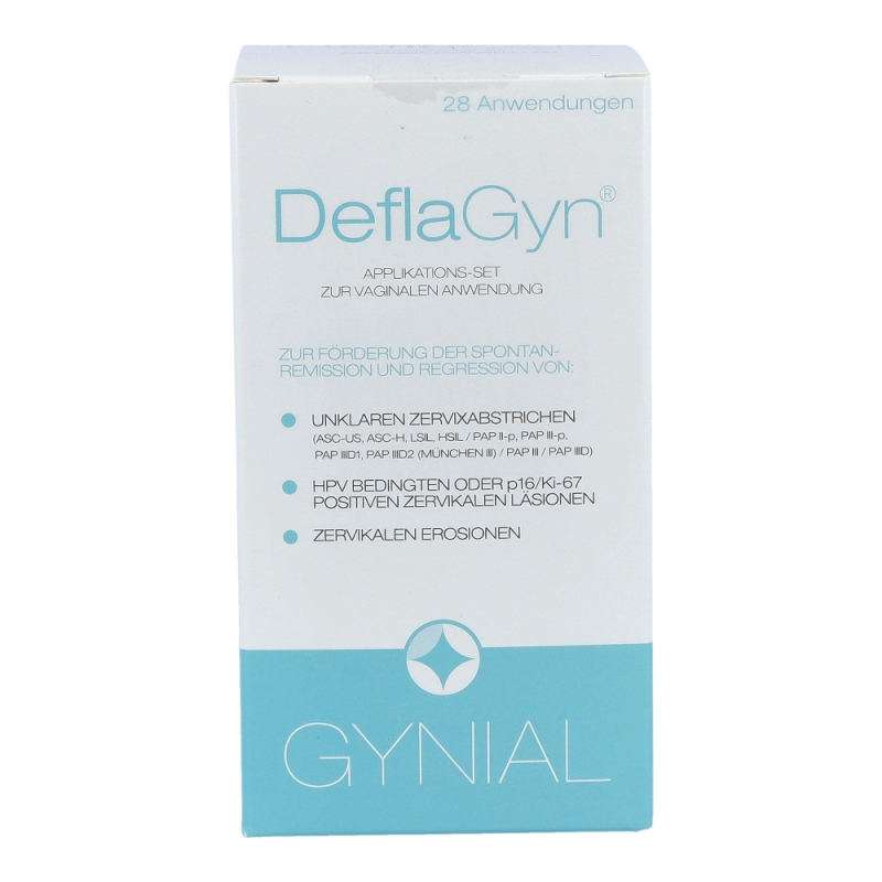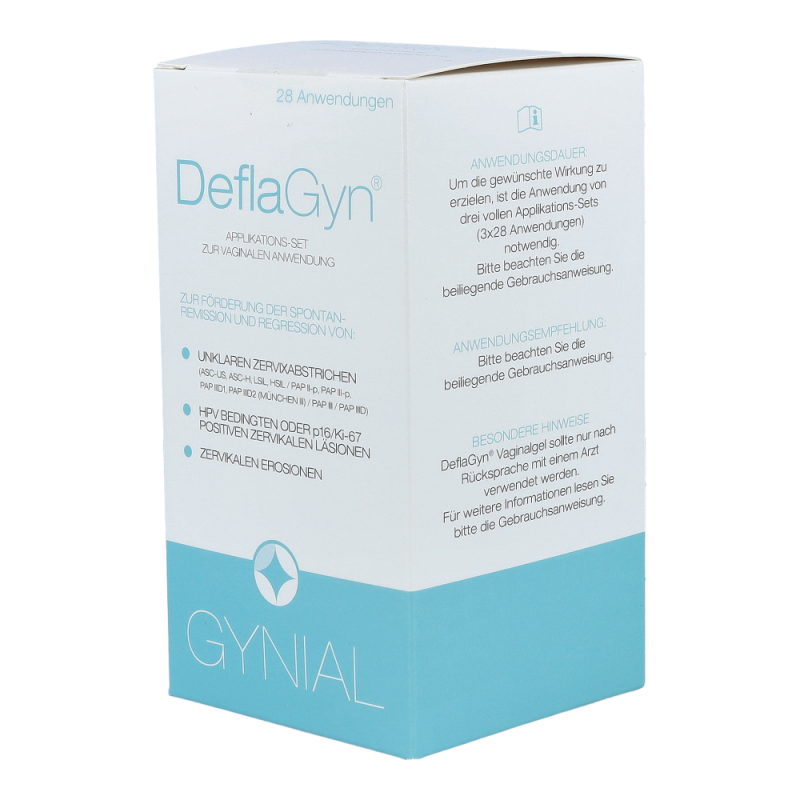 Unklarer PAP-Befund? PAP III oder PAP IID? Wiederholung des Abstrichs in 3 – 6 Monaten? DeflaGyn® Vaginalgel wurde eigens zur Überbrückung dieser Wartezeit entwickelt. Es kann zur Verbesserung unklarer Zervixabstriche beitragen, indem die Inhaltsstoffe Siliziumoxid, Natriumselen und Zitronensäure Krankheitserreger binden, deren Ausbreitung hemmen und einen antioxidativen Schutz bieten. Dieser dreistufige Wirkmechanismus entlastet die Gewebeoberfläche und verbessert dadurch Bedingungen für Spontanremission (Besserung des Befundes).