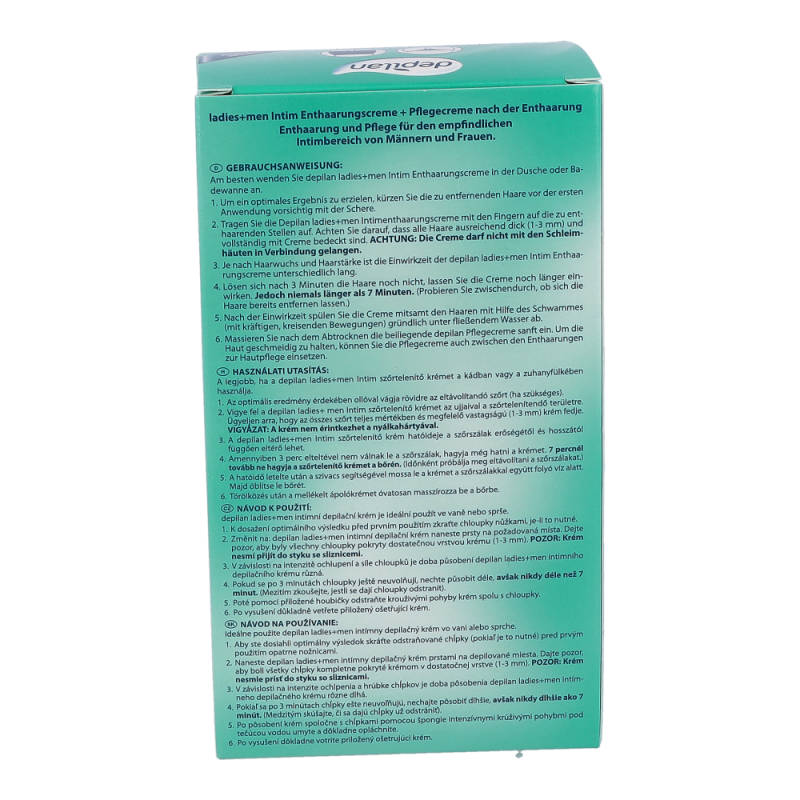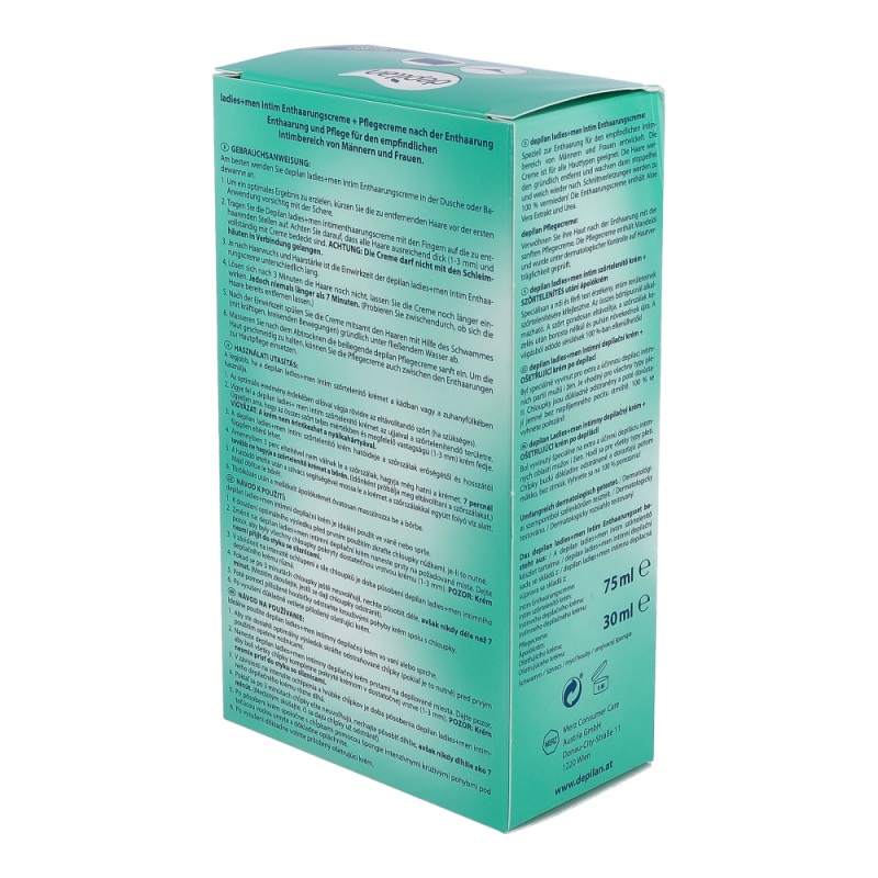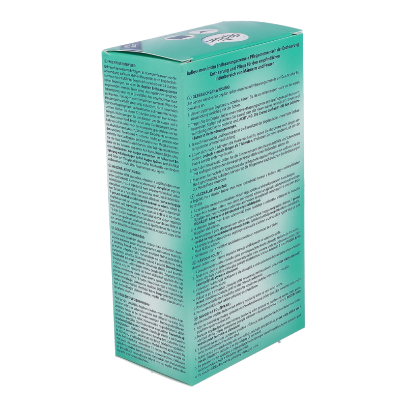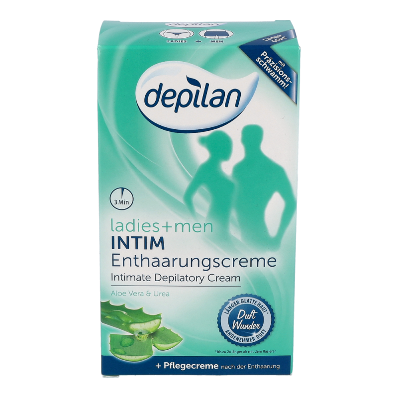 Depilan Ladies + Men Intim Enthaarungscreme dient der sanften Enthaarung für den empfindlichen Intimbereich sowohl für Männer, als auch für Frauen. Sie eignet sich für alle Hauttypen. Die Haare werden gründlich entfernt und wachsen dann stoppelfrei und weich wieder nach. Schnittverletzungen werden zu 100% vermieden.