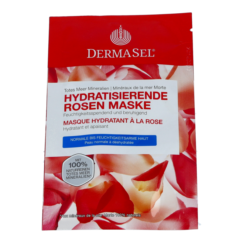 Dermasel Maske Hydrante Rose gleicht den Feuchtigkeitsgehalt der Haut aus. Die Hautschutzbarriere wird gestärkt, die Haut vor Reizungen und trockenheitsbedingter Faltenbildung geschützt. Mit dem Duft zarter Rosenblüten.