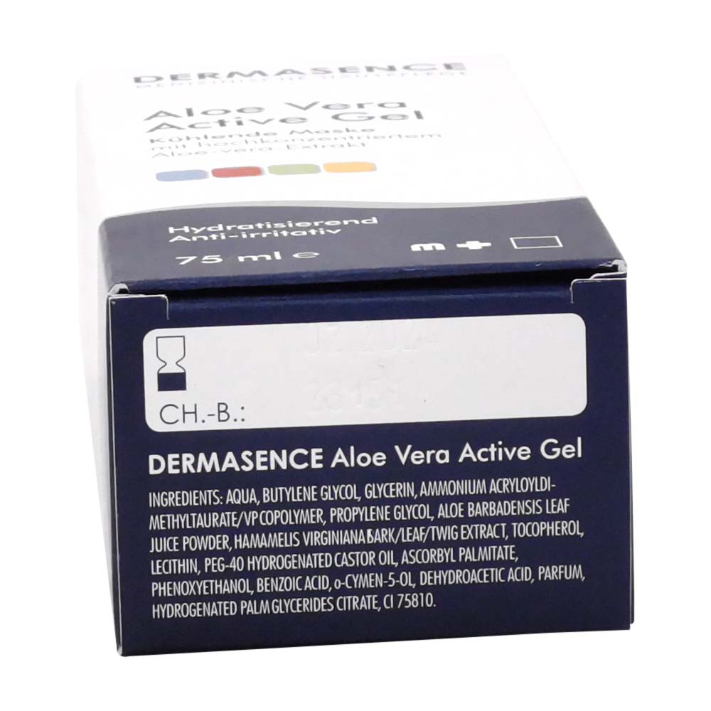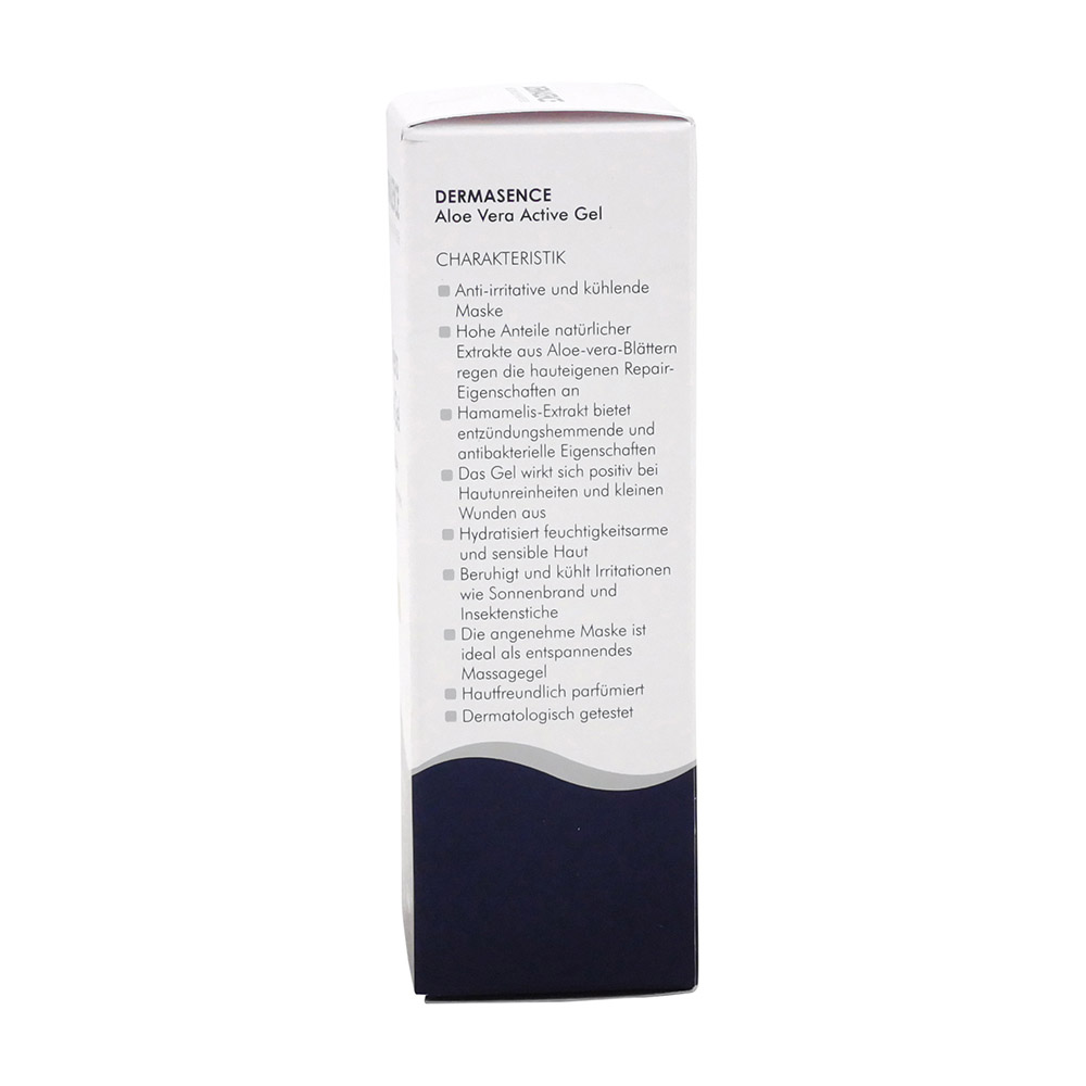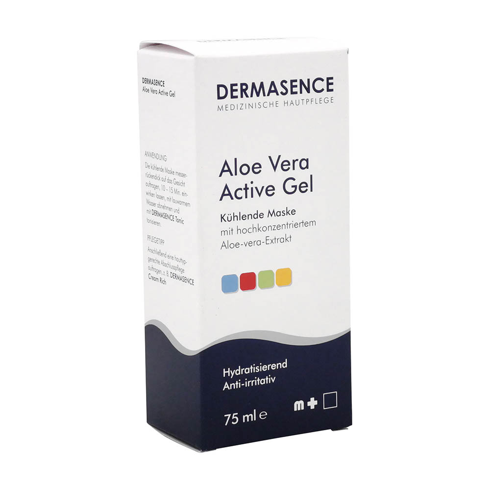 Das Dermasence Aloe Vera Active Gel ist eine kühlende Gel-Maske für Gesicht, Hals und Dekolletee, mit anti-irritativer Wirkung bei unreiner und feuchtigkeitsarmer Haut. Das beruhigende Gel wird aus dem Mesophyll der Aloe Vera (Aloe barbadensis) gewonnen. Durch ein spezielles Extraktionsverfahren ist es besonders wirksam, sodass die hauteigenen Repair-Eigenschaften angeregt werden. Die Haut wird geglättet und optimal mit Feuchtigkeit versorgt. Das Gel eignet sich auch zur Kühlung bei Sonnenbrand und Insektenstichen.
