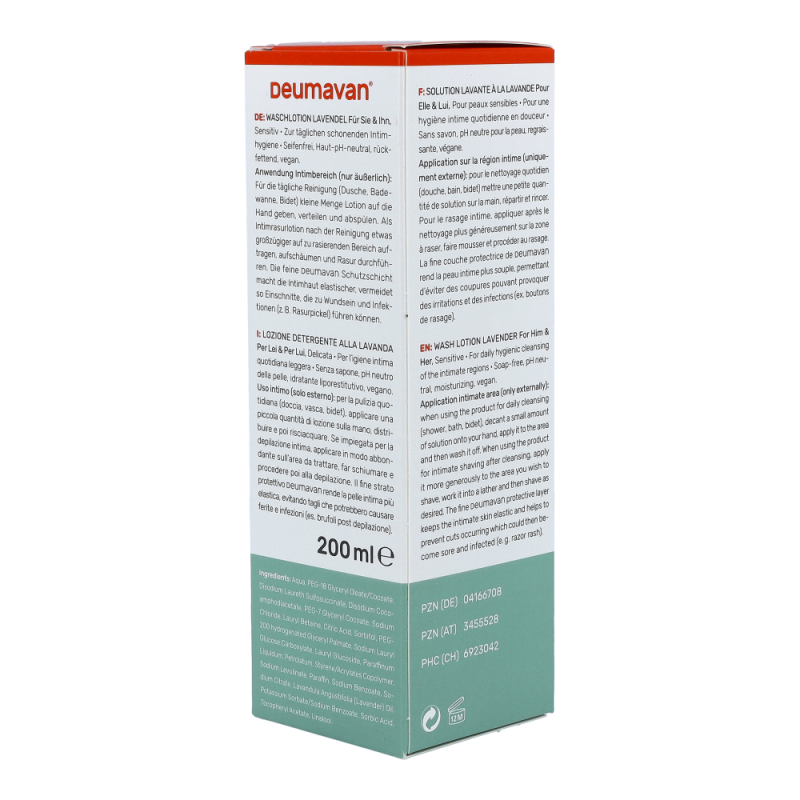 Deumavan Waschlotion reinigt die empfindliche Haut im Intimbereich schonend und nachhaltig. Bei allgemein anspruchsvoller Haut kann sie auch zur Reinigung des ganzen Körper eingesetzt werden.