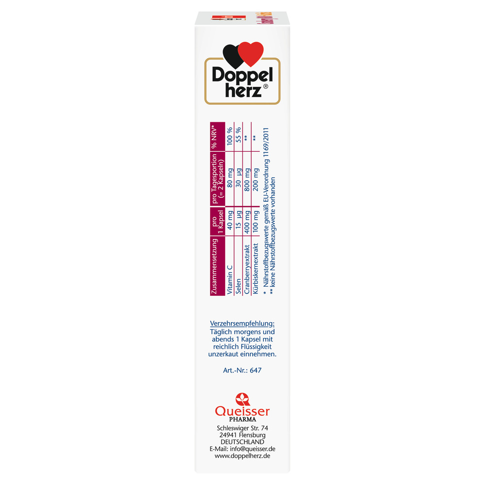 Unser Körper ist ein Multitalent. Doch kann er Vitamine wie z. B. Vitamin C und Spurenelemente wie z. B. Selen nicht selbst bilden. Man muss ihm diese Nährstoffe regelmäßig und ausreichend über die Nahrung zuführen. Vitamin C und Selen tragen dazu bei, die Zellen vor oxidativem Stress zu schützen. Eine gute Versorgung mit Vitamin C und Selen unterstützt die normale Funktion des Immunsystems. Die Pflanzenzubereitungen aus Cranberry und Kürbiskernen bilden die pflanzliche Basis der Kapseln. Die Cranberry (Vaccinium macrocarpon) wird auch als „Große Moosbeere“ bezeichnet. Sie wächst in den Hochmooren von Nordamerika und ist eng verwandt mit der europäischen Preiselbeere und der Heidelbeere. Schon bei den Ureinwohnern Nordamerikas war sie ein bedeutendes und sehr geschätztes Nahrungsmittel. Heute findet die Cranberry zunehmend auch in unserer Küche Einzug. Der Kürbis ist ein altes Nahrungsmittel des Menschen. Kürbiskerne werden schon seit Jahrhunderten genutzt. Vitamin C + Selen zur Unterstützung der normalen Funktion des Immunsystems. Vitamin C als Beitrag zum Schutz der Zellen vor oxidativem Stress.
