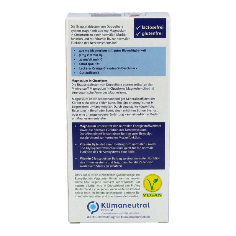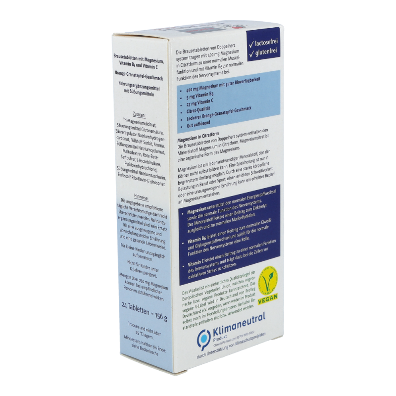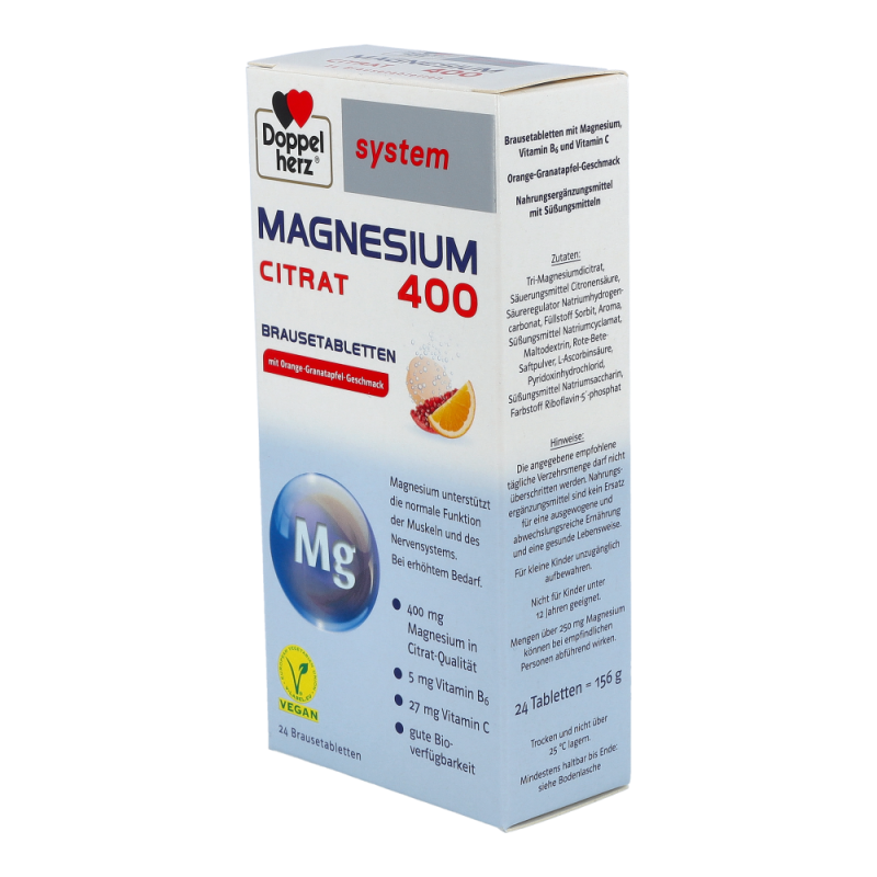 Doppelherz system MAGNESIUM 400 DEPOT unterstützt die normale Funktion der Muskeln und des Nervensystem. Zudem leistet Magnesium einen Beitrag zum Elektrolytausgleich. Gut kombiniert mit Vitamin B6 und Vitamin C: Vitamin B6 (Pyridoxin) trägt zum normalen Eiweiß- und Glykogenstoffwechsel bei. Zudem begünstigt das Vitamin die Aufnahme von Magnesium in die Zellen. Vitamin C (Ascorbinsäure) unterstützt die normale Funktion des Immunsystems und leistet einen Beitrag zum Schutz der Zellen vor oxidativen Stress.