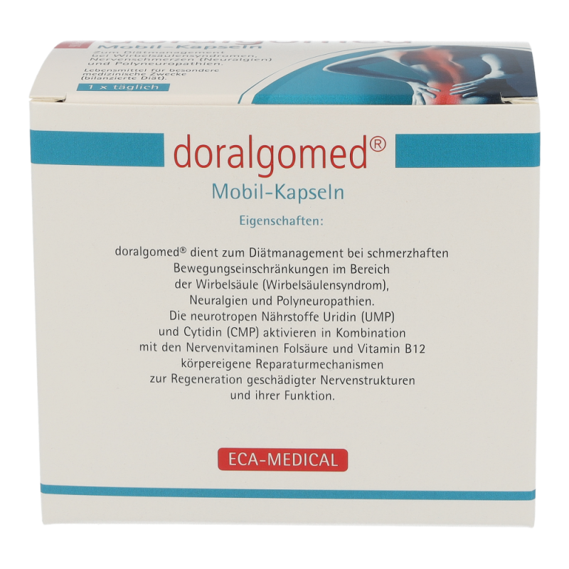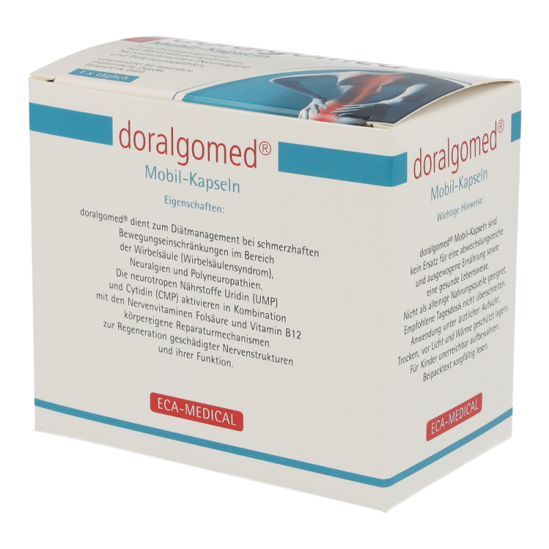 doralgomed Mobil-Kapseln dienen zur diätetischen Behandlung von schmerzhaften Bewegungseinschränkungen im Bereich der Wirbelsäule (Wirbelsäulensyndrom), Neuralgien und Polyneuropathien.