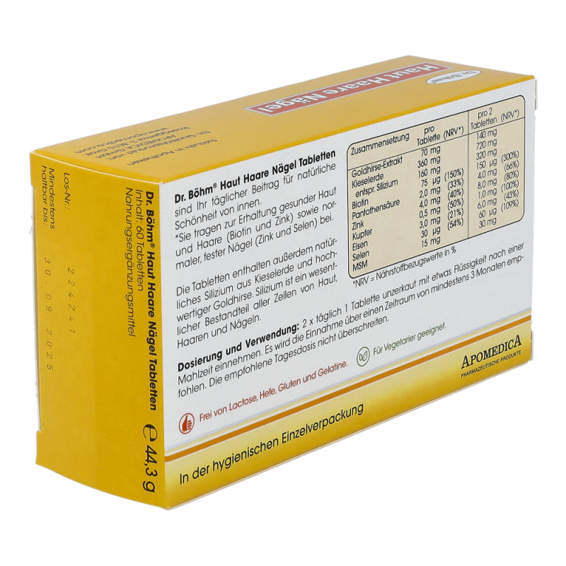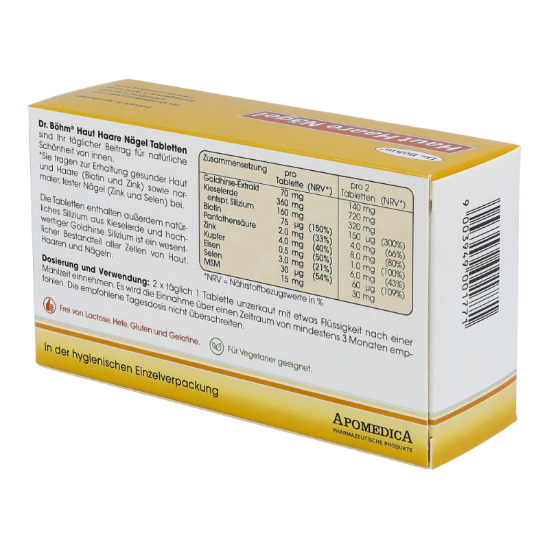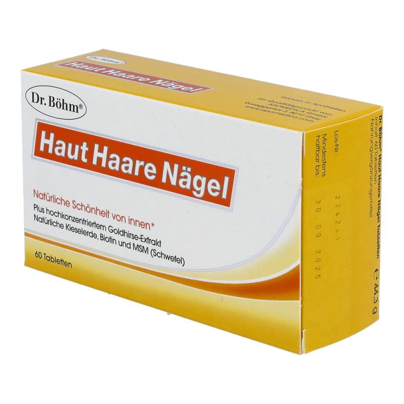Dr. Böhm Haut Haare Nägel Tabletten sorgen für schöne Haut, kräftiges Haar und feste Fingernägel. Sie bieten eine gezielte Nährstoffversorgung für die Schönheit von innen und bringen damit mehr Lebensfreude, Jugendlichkeit und Selbstbewusstsein.