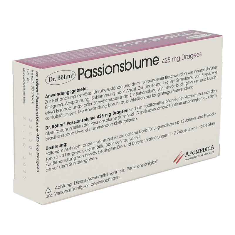 DR. BÖHM® Passionsblume Dragees wirken bei Unruhezuständen: Erregung, Anspannung, Beklemmung oder Angst, Ein- und Durchschlafstörungen.