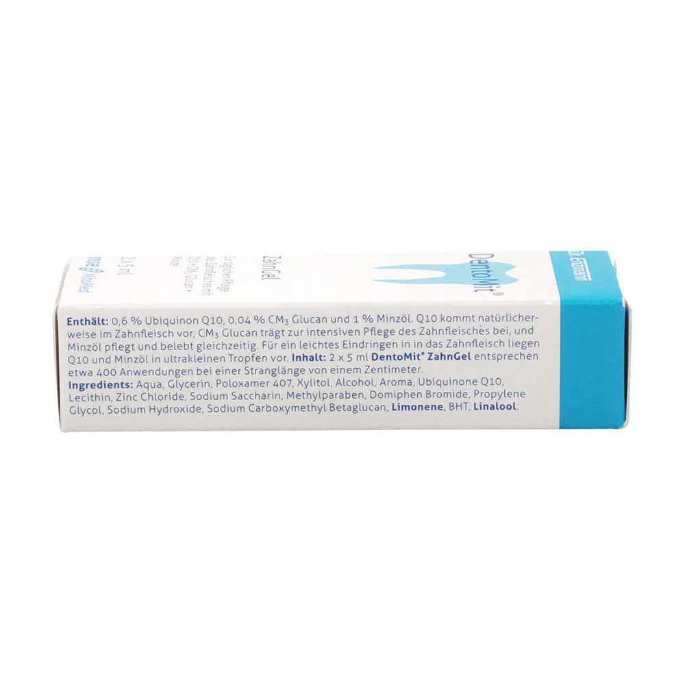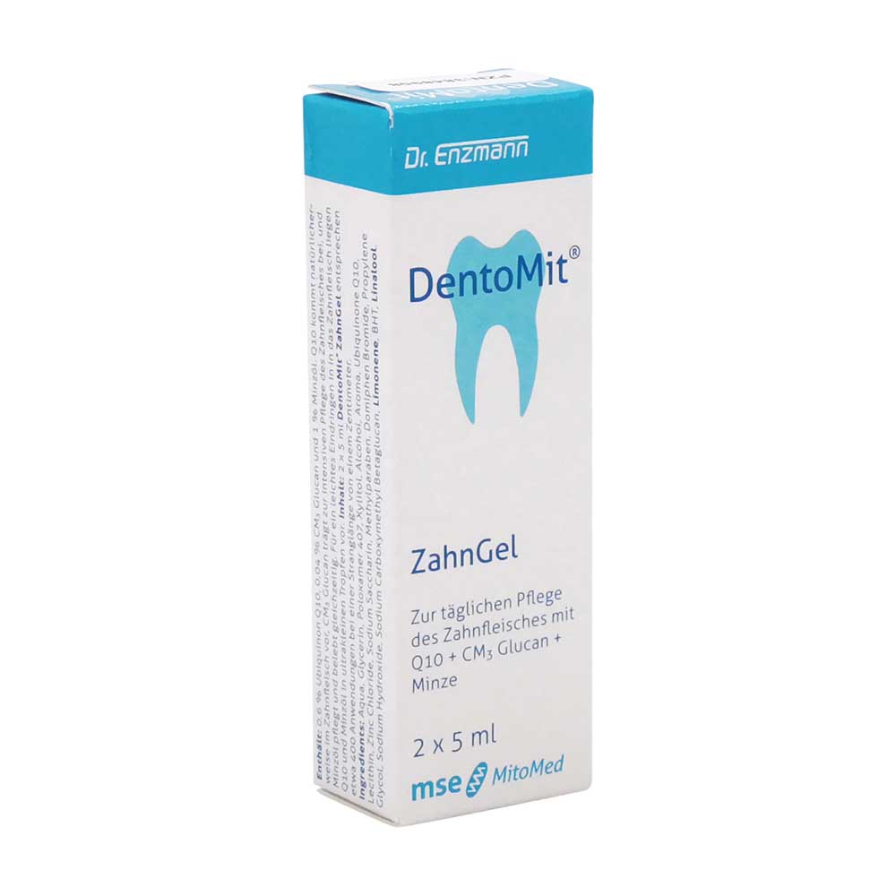 Dr. Enzmann Dentomit Zahngel 2 x 5 ml enthält bioenergetisch aktives Ubiquinon Q10 mit einer einzigartigen Formel aus ultrakleinen Flüssigpartikeln, in ultrakleinen Tropfen verkapseltes Minzöl und CM3Glucan. Die Kombination pflegt das Zahnfleisch intensiv und nachhaltig bis in sonst unzugängliche Bereiche.