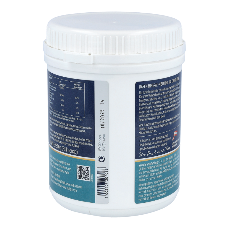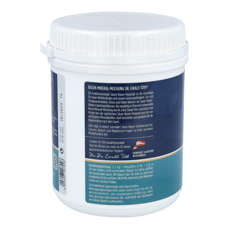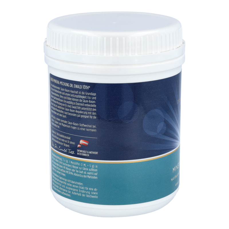 Dr. Ewald Töth Basen Mineral Mischung Pulver ist ein Nahrungsergänzungsmittel, das in der Lage ist alle 8 Hauptsäfte des menschlichen Körpers zu entsäuern und ein stabiles Säure-Basen-Gleichgewicht im Körper herzustellen. Das Pulver wirkt intra-, extra- und transzellulär und ist aus natürlichen, basischen Mineralien zusammengestellt. .