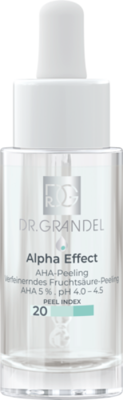 Feel fine! Alpha Effect AHA-Peeling 20 ist ein Fruchtsäurepeeling für ein reines, erfrischtes Hautgefühl. Dank der enthaltenen Fruchtsäuren peelt die gelige Formulierung effektiv. Gleichzeitig wird die Haut verfeinert und Unebenmäßigkeiten werden gemildert. Für ein optimales Ergebnis kann Alpha Effect als Kur angewendet werden. Für ein frisches, intensiv verfeinertes Hautbild.