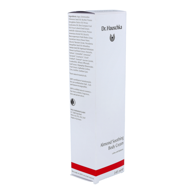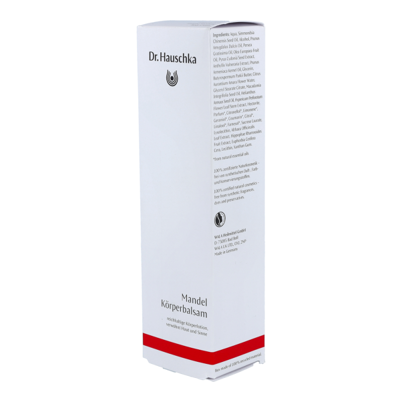 Dr. Hauschka Mandel Körperbalsam glättet trockene und sensible Haut. Die ausgewählte Komposition reguliert die Feuchtigkeit der Haut, so dass sie sich wieder geschmeidig anfühlt.