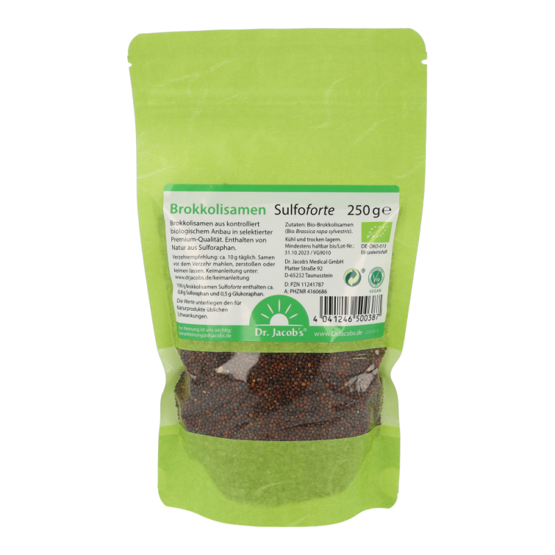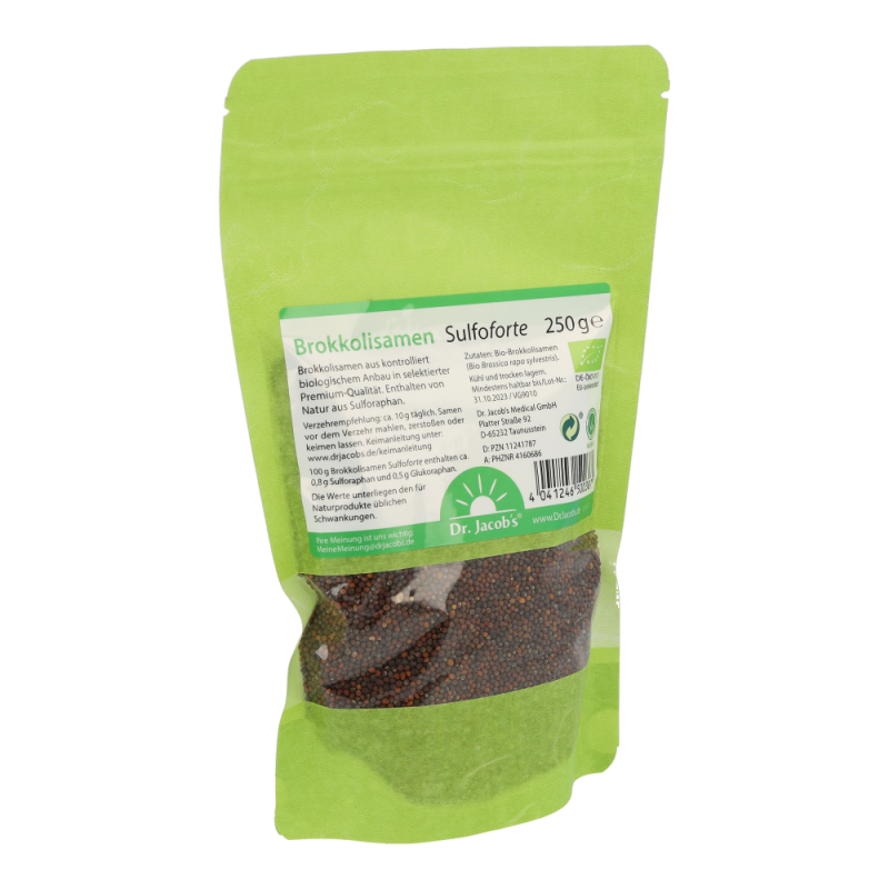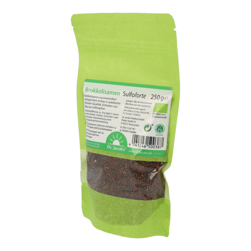 Damit die in den Brokkolisamen enthaltenen Senfölglycoside vom Körper aufgenommen werden können, müssen sie vor dem Verzehr aufgeschlossen werden. Möglichkeiten hierfür sind beispielsweise das Mahlen/Zerstoßen der Samen oder Keimen.