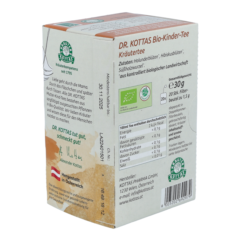 Kräuter für Ihr Kind – nach dem 4. Monat. Von Kindern gerne getrunkener Kräutertee mit Holunderblüten in BIO-Qualität.