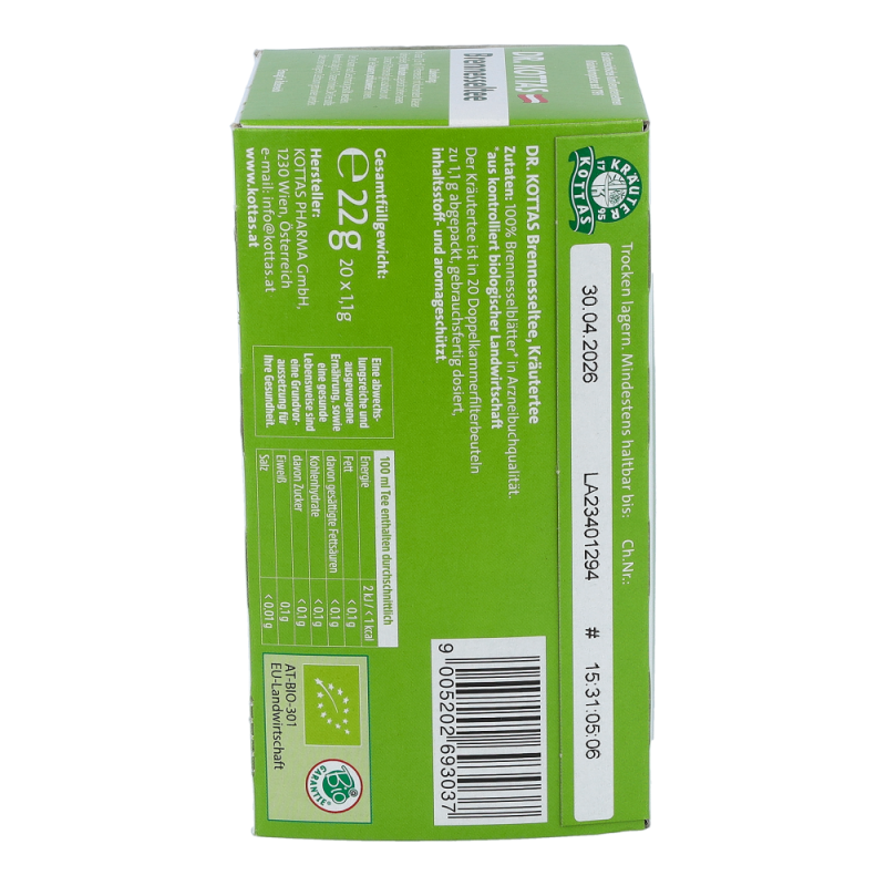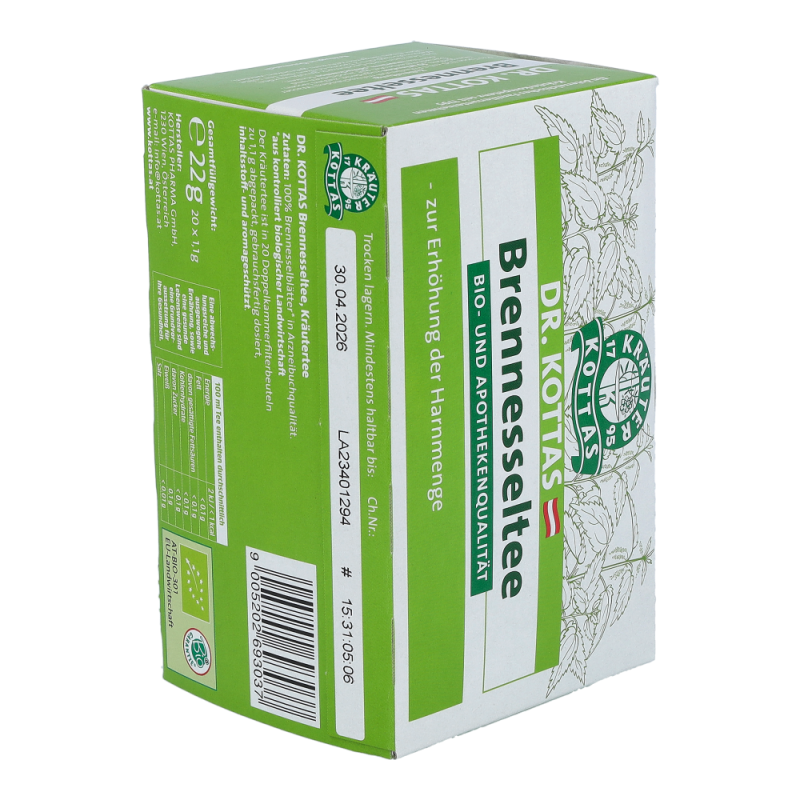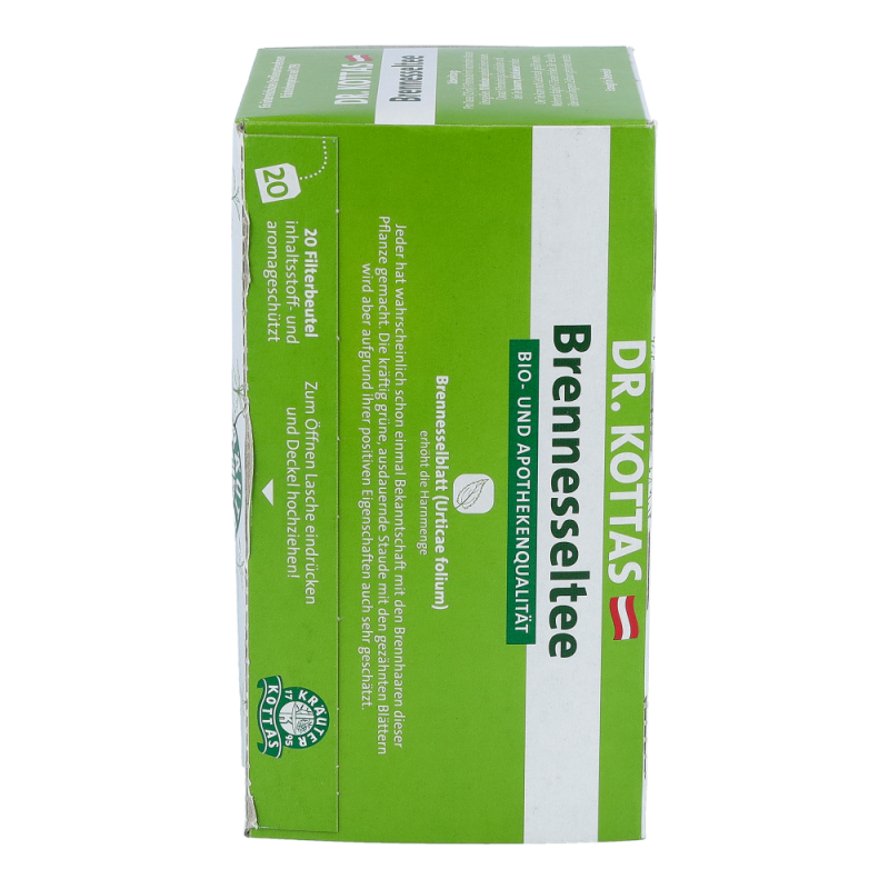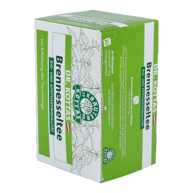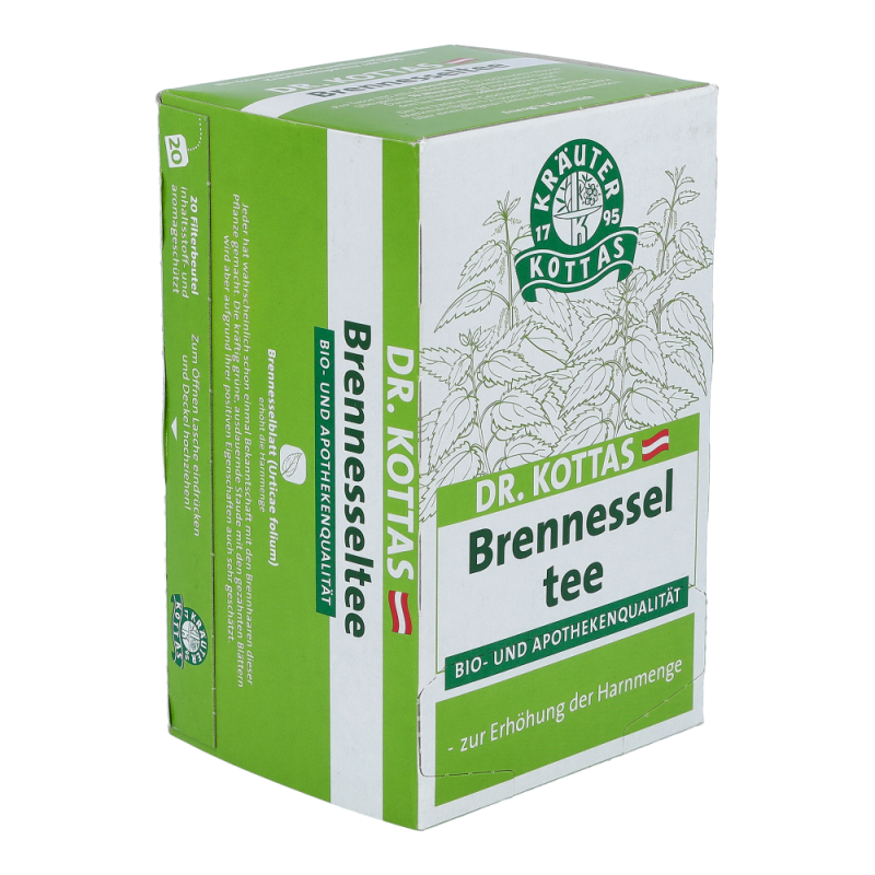 Dr. Kottas Brennesseltee ist ein beliebter und wohlschmeckender Begleiter beim Fasten und Entgiften. Das Brennesselblatt erhöht die Harnmenge und spült die Harnwege durch..