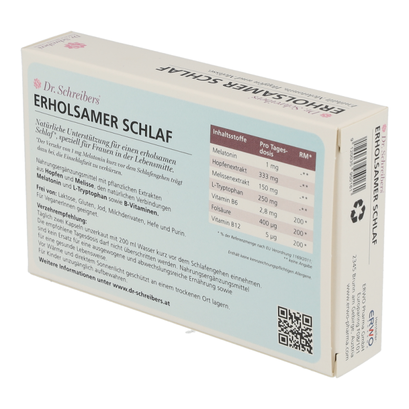 Dr. Schreibers Erholsamer Schlaf bietet natürliche Unterstützung für einen erholsamen Schlaf, speziell für Frauen in der Lebensmitte. Die Kapseln helfen durch ihre hochwertige Kombination an natürlichen und pflanzlichen Inhaltsstoffen entspannt einzuschlafen, gut durchzuschlafen und erholt aufzuwachen.