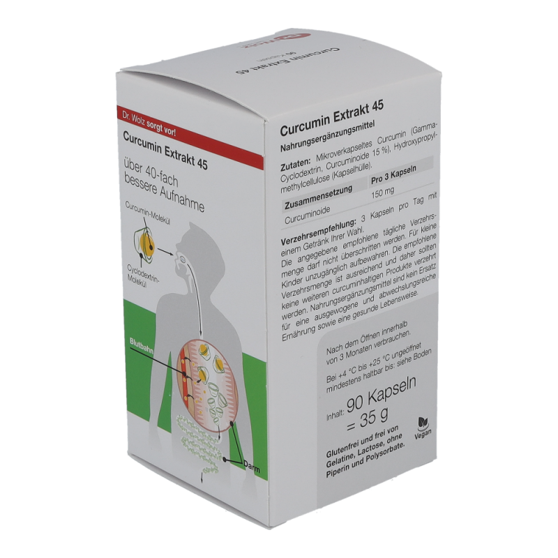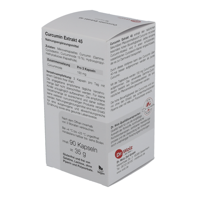 Curcumin wird schon seit mehreren Tausend Jahren in der asiatischen Naturheilkunde eingesetzt. Mittlerweile gibt es über 3000 Studien zur gesundheitsfördernden Wirkung zu Curcumin. Curcumin Extrakt 45 hat eine um bis zu 45x höhere Bioverfügbarkeit als herkömmliche Darreichungsformen von Curcumin.
