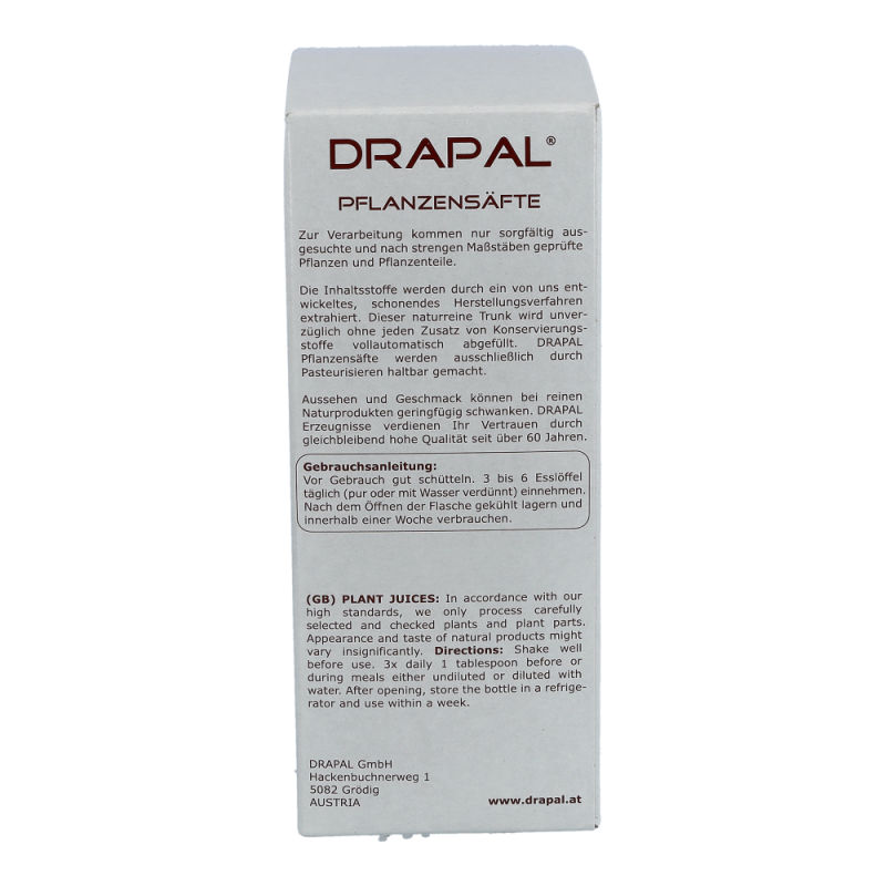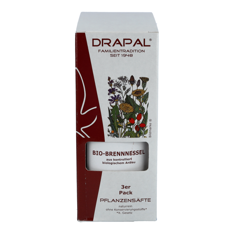 Drapal Brennessel Saft ist zu 100% wirksam und das ganz ohne Chemie. Natürlich ist der Saft auch ohne Konservierungsstoffe, ohne Zuckerzusatz und ohne Alkohol. Reine Natur zum Trinken. Dieses Produkt erhalten Sie in den Packungsgrößen 200 ml und 600 ml.