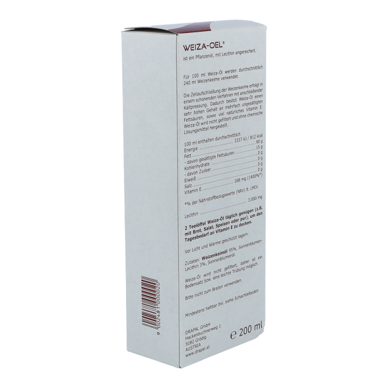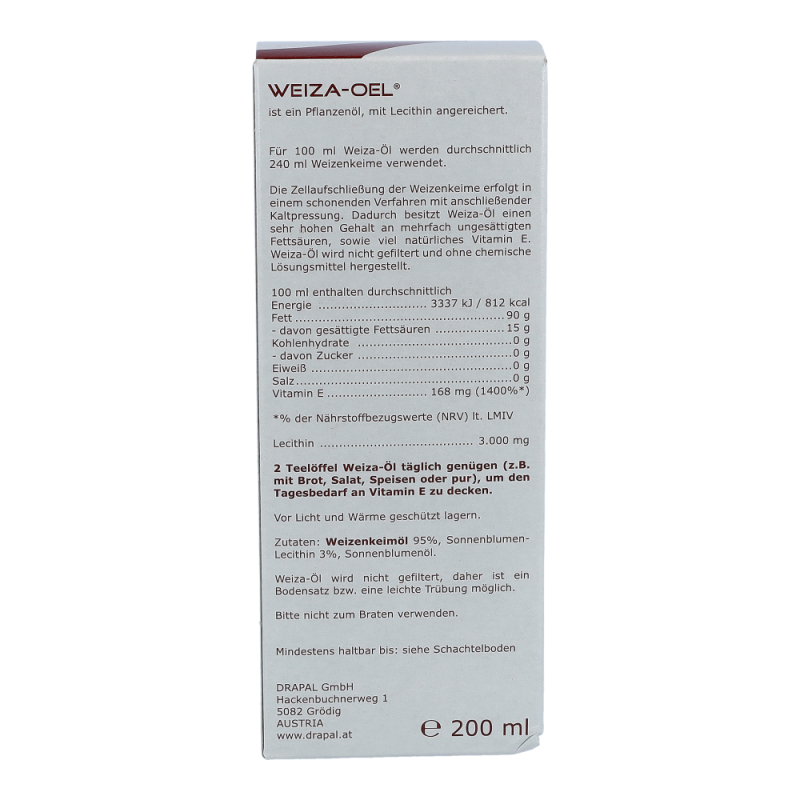 Drapal Weiza Öl ist besonders reich an natürlichem Vitamin E. Zu diesem kalt-gepressten Öl bekommen Sie so Genuss mit Vitamin E und Lecithin in Einem