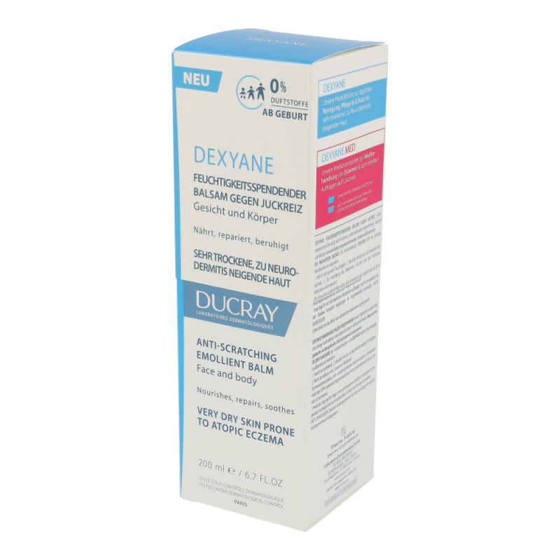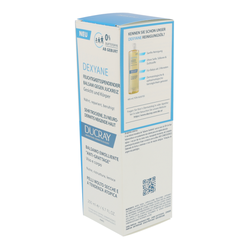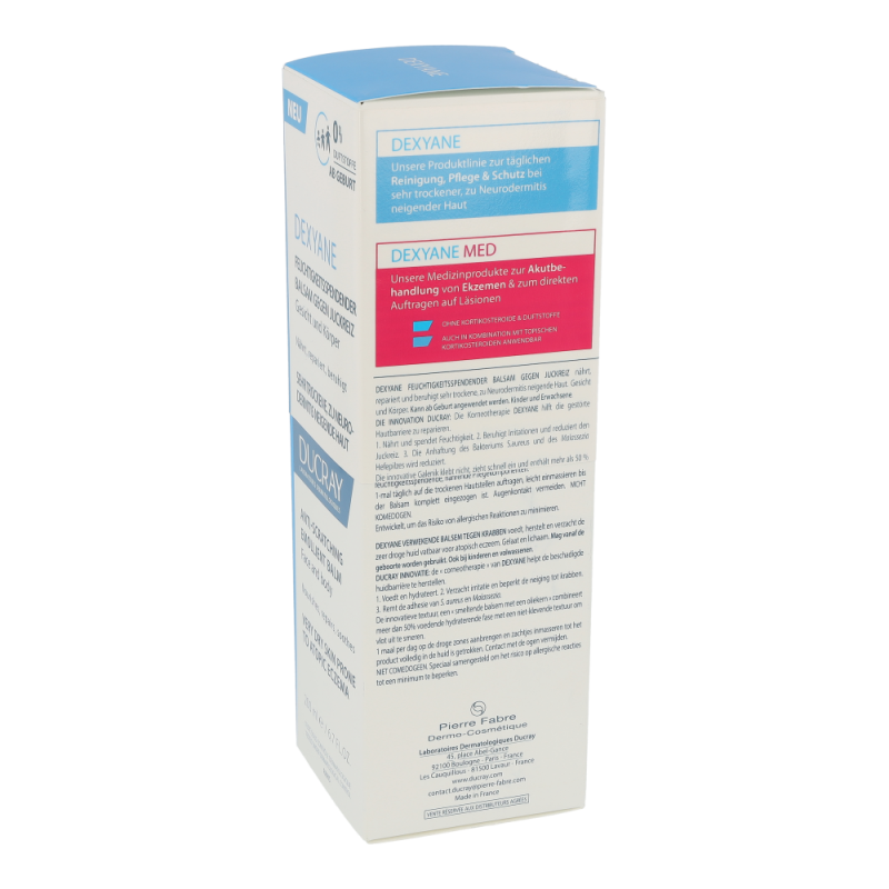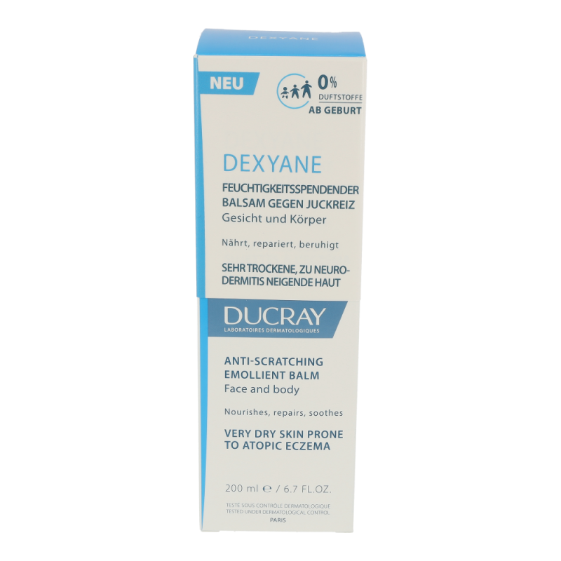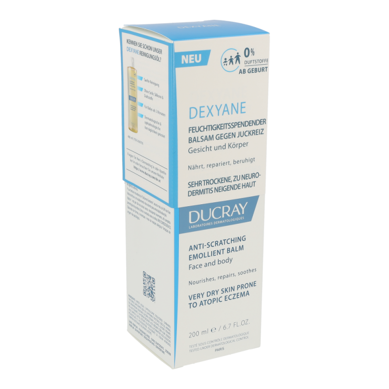 DEXYANE Balsam gegen Juckreiz ist eine Pflege für Gesicht und Körper, die sehr trockene und zu Neurodermitis neigende Haut nährt und beruhigt. Dieser Balsam mit innovativer Textur verwandelt sich bei Kontakt mit der Haut in Öl und verleiht ein angenehmes Gefühl. Die nährende Formulierung, die insbesondere HYDROXYDECINE® enthält, verbessert die Barrierefunktion der Haut und versorgt sie intensiv mit Feuchtigkeit. Die nicht fettende, nicht klebende Textur ermöglicht sich sofort anzuziehen.