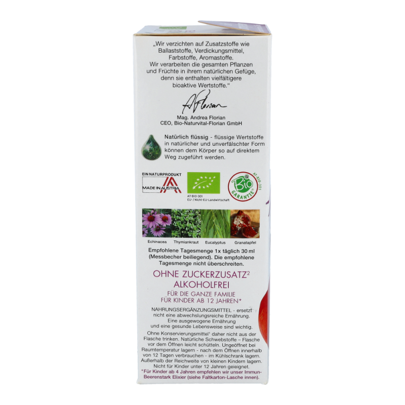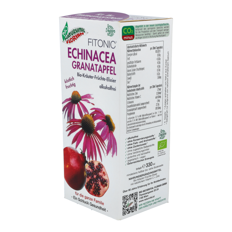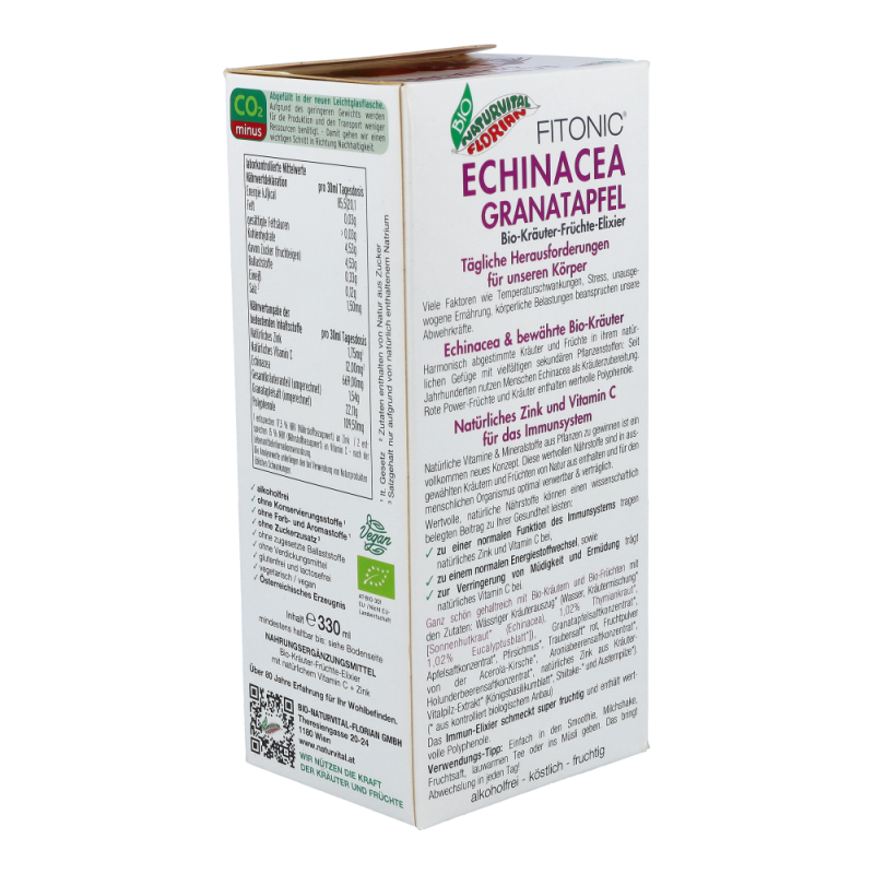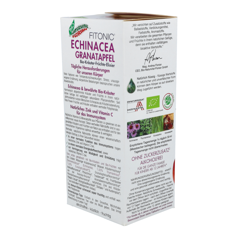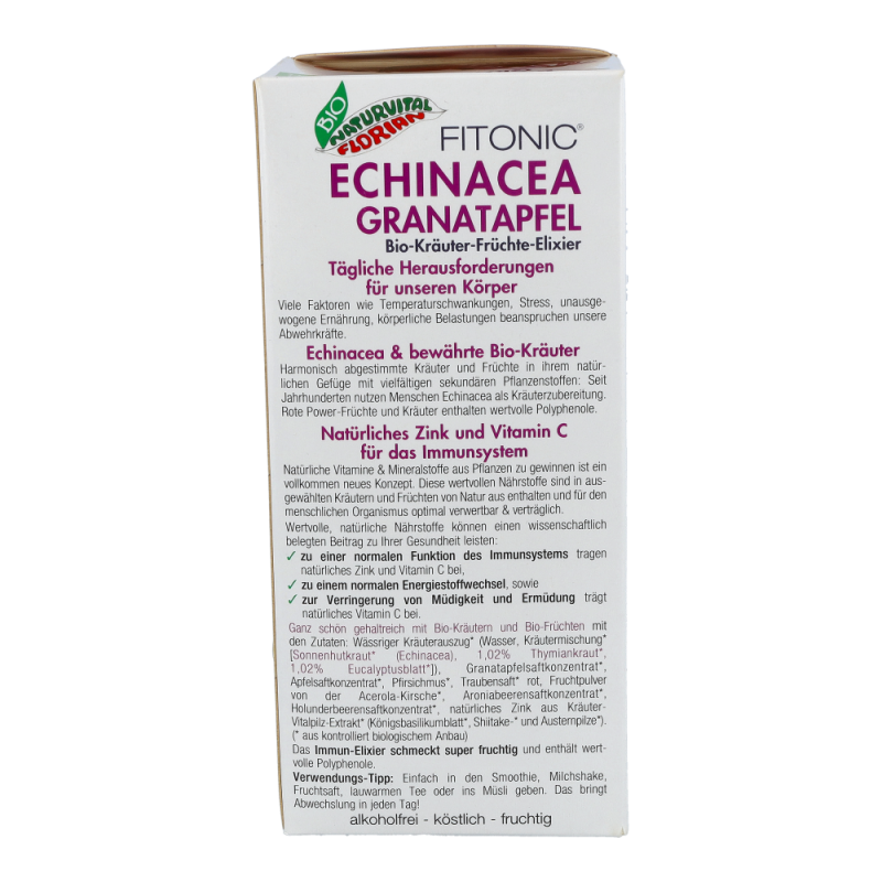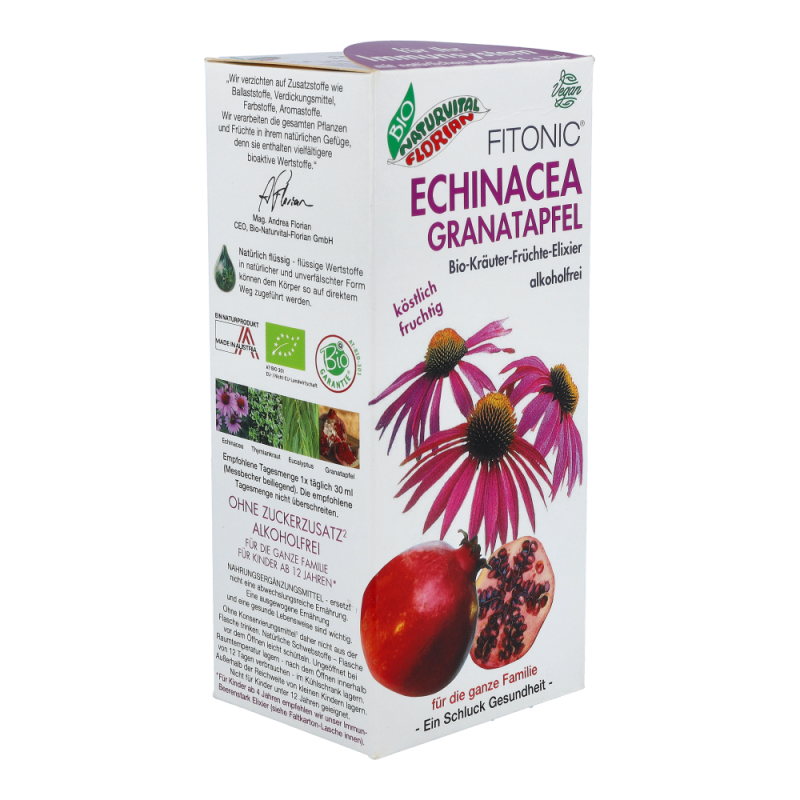 Echinacea Granatapfel Elixier Bio alkoholfrei für eine normale Funktion des Immunsytems, für einen normalen Stoffwechsel und zur verringerung von Müdigkeit und Ermüdung..