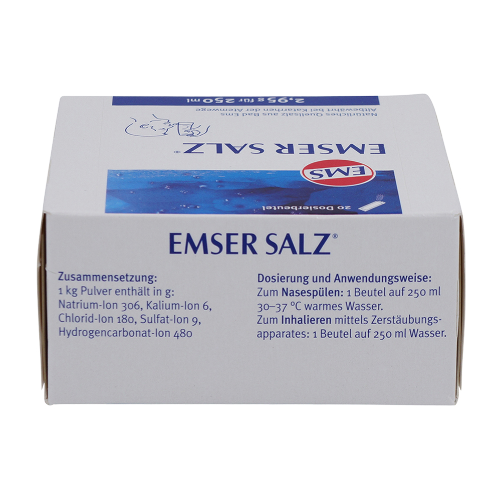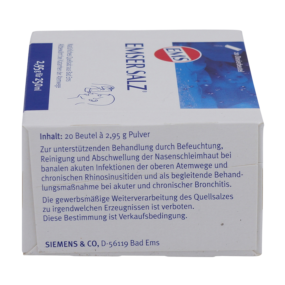 Emser Salz 2, 95g Beutel hilft bei akuten und chronischen Katarrhen der Atemwege sollten Sie es zum Nasespülen verwenden. Emser Salz wirkt abschwellend und aktiv schleimlösend.