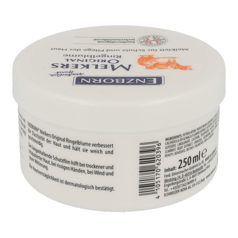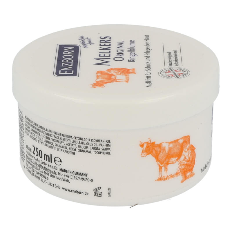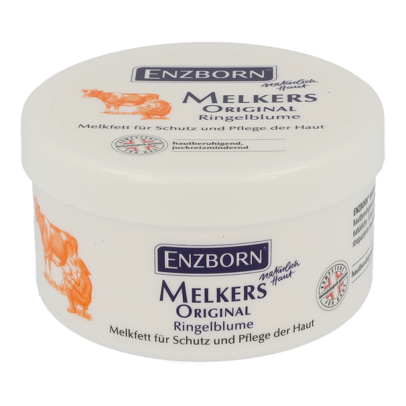 Enzborn Melkfett Extrakt plus stärkt die natürliche Schutz- und Barrierefunktion der Haut. Der Feuchtigkeitshaushalt der Haut wird positiv reguliert, ein Austrocknen und Auskühlen wird vermieden. Als dünner Film aufgetragen schützt es gegen Nässe, Flüssigkeiten, Schmutz und Umwelteinflüssen. Dieses Produkt erhalten Sie in den Varianten Jojoba, Ringelblume und Teebaum in Packungen á 250 ml.