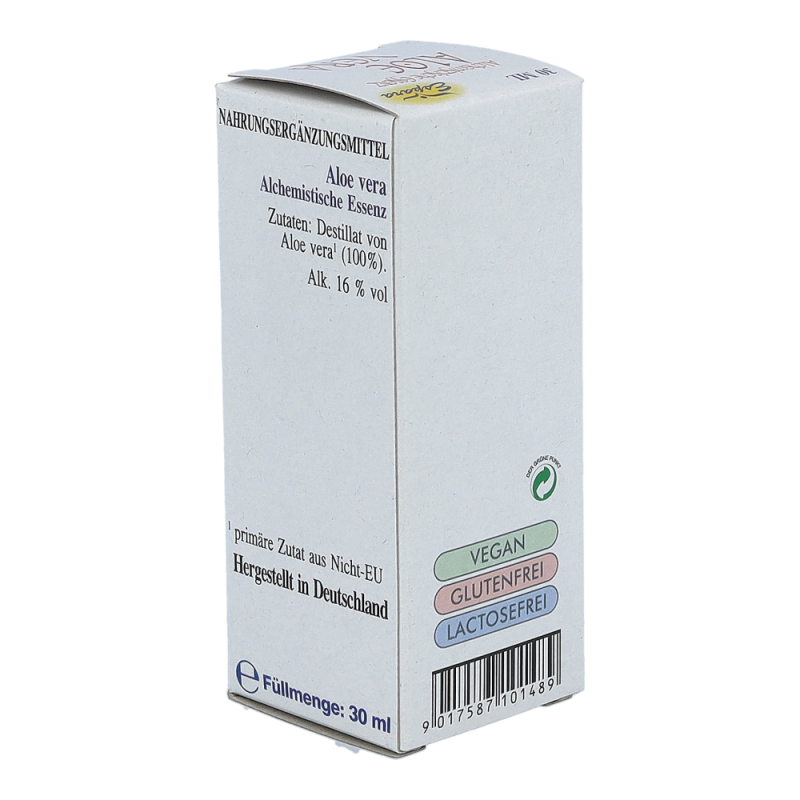 Nahrungsergänzungsmittel mit Aloe-Vera-Destillat hergestellt nach einem speziellen, auf Paracelsus zurückgehenden Verfahren. Aloe Vera ist bekannt für ihre reinigende Wirkung auf das Verdauungssystem. Alk. 16 % vol.