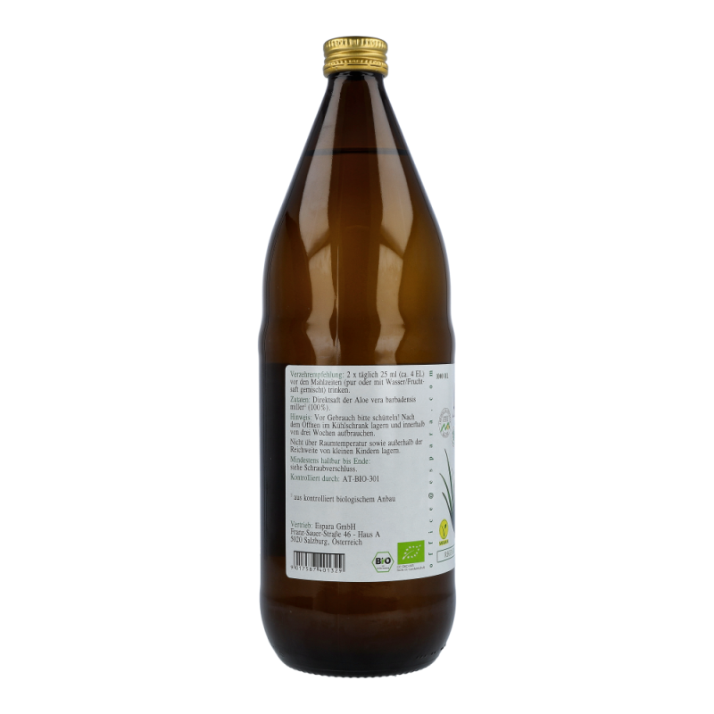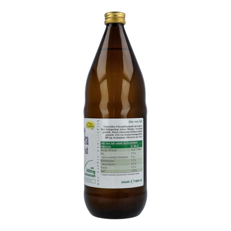 Mit Qualitätsgütesiegel der Nährstoffakademie! Naturtrüber Frischpflanzensaft, frei von Konservierungsstoffen, von Hand geschält und schonend verarbeitet. Die Aloe zeichnet sich durch das Zusammenspiel zahlreicher Inhaltsstoffe aus und beeinflusst das Immunsystem sowie den gesamten Stoffwechsel positiv.