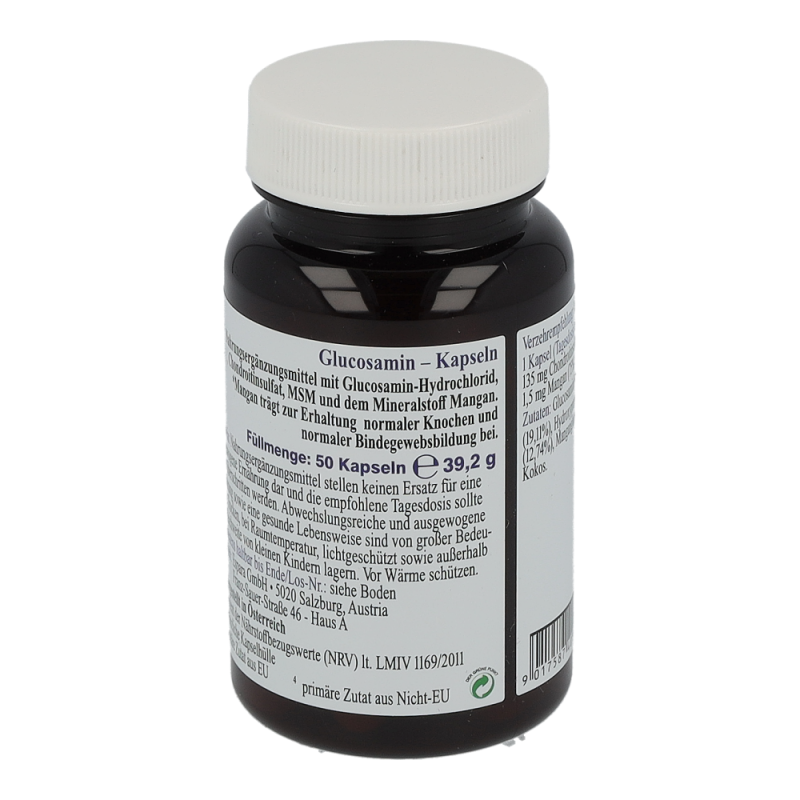 400 mg Glucosamin-Hydrochlorid, 135 mg Chondroitinsulfat, 100 mg MSM (Methylsulfonylmethan), 1,5 mg Mangan (75% NRV)