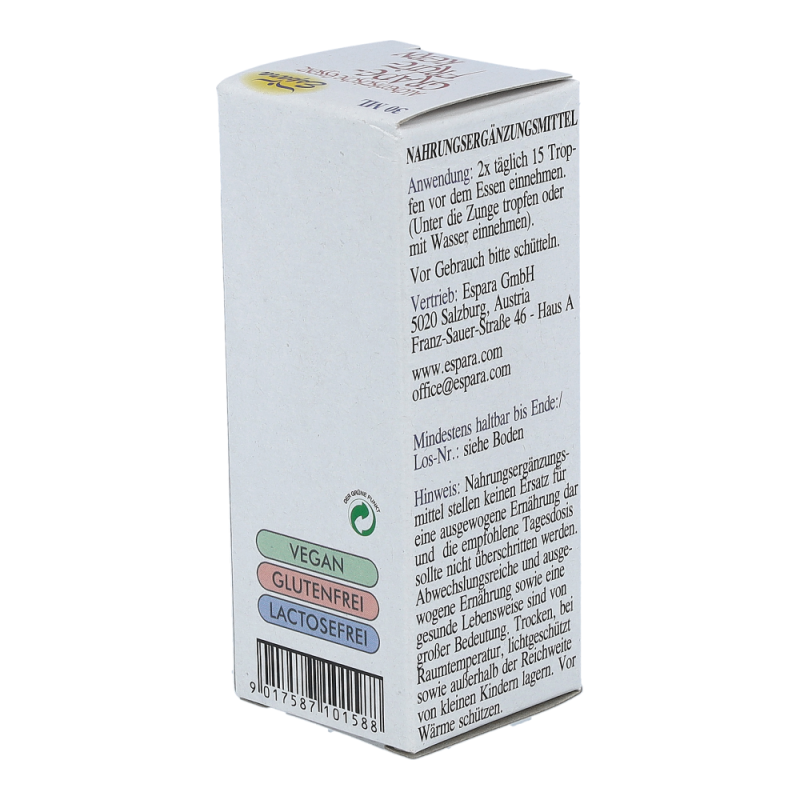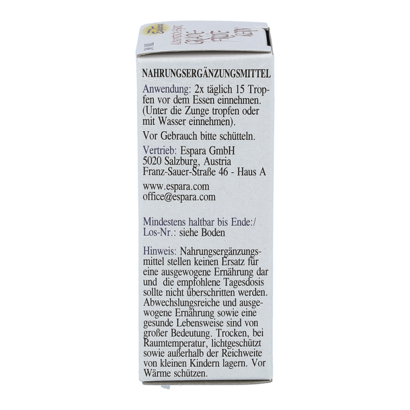 2 x täglich 15 Tropfen vor dem Essen einnehmen. (unter die Zunge tropfen oder mit Wasser einnehmen)
