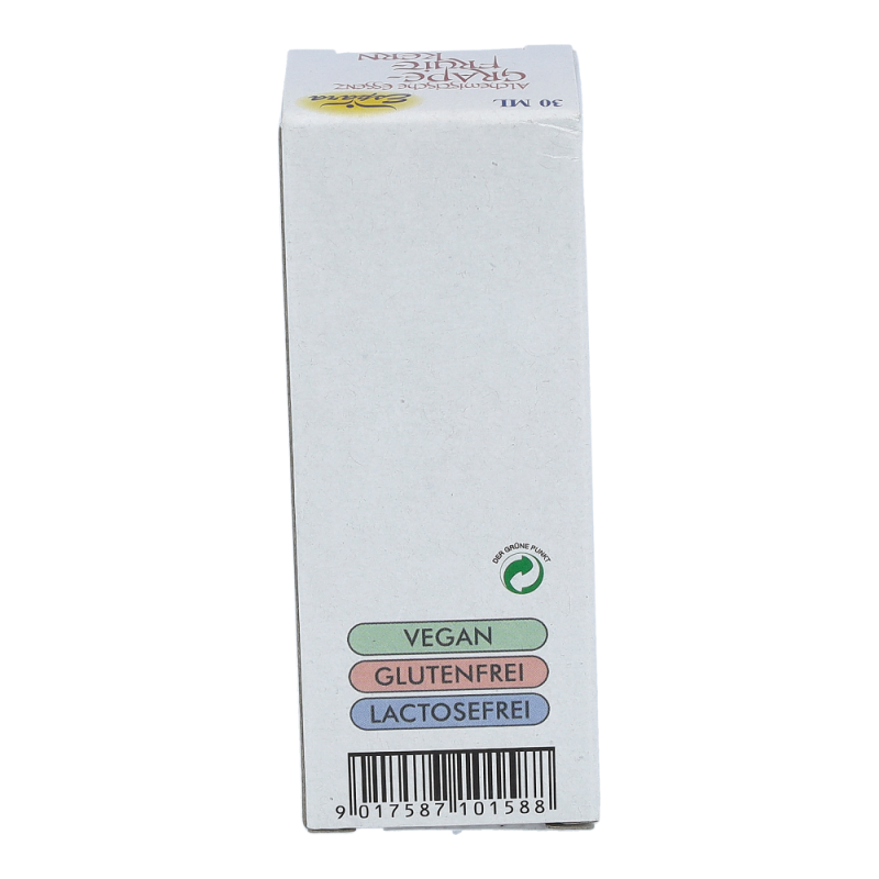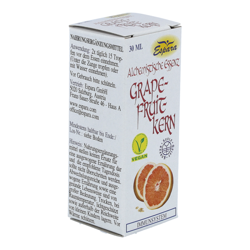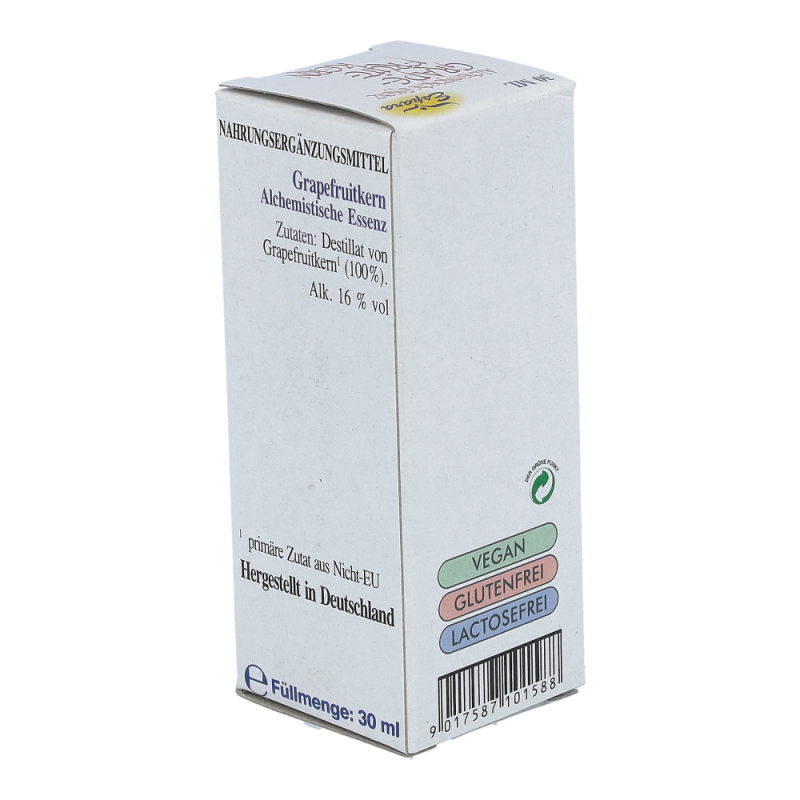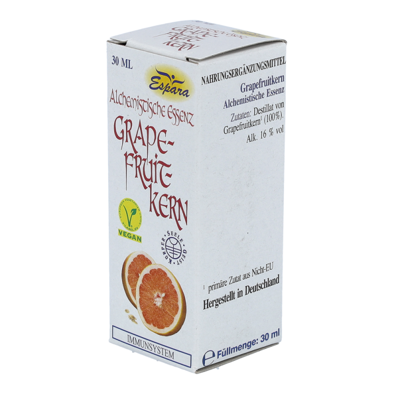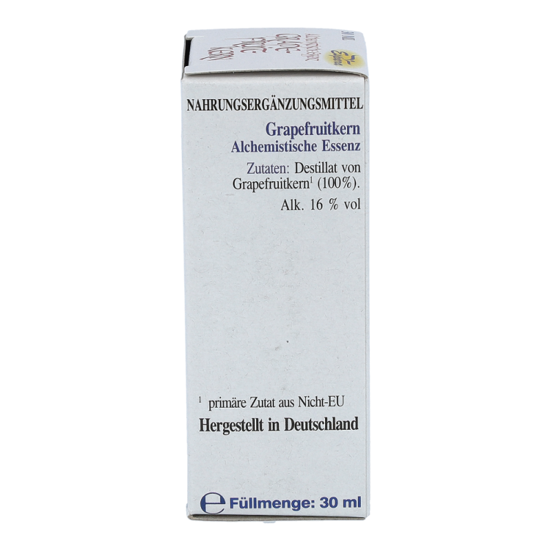 Nahrungsergänzungsmittel mit Grapefruitkern-Destillat hergestellt nach einem speziellen, auf Paracelsus zurückgehenden Verfahren. Grapefruitkern ist bekannt für den positiven Einfluss auf das Immunsystem. Alk. 16 % vol