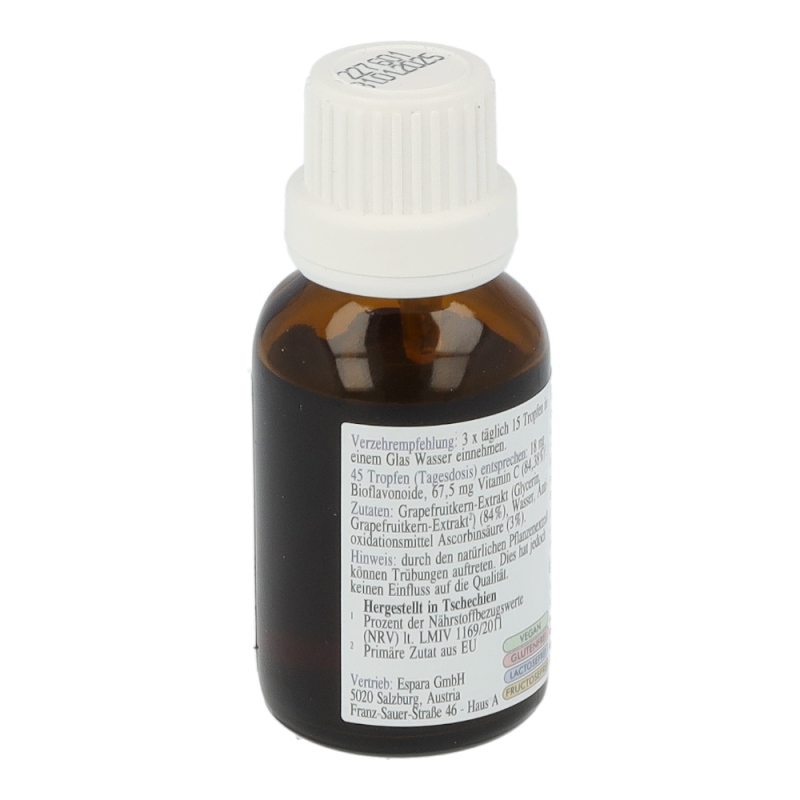 Grapefruitkern-Extrakt (Glycerin, Grapefruitkern-Extrakt) (84%), Wasser, Antioxidationsmittel Ascorbinsäure (3%).
