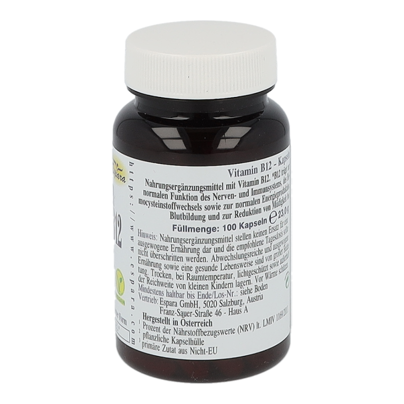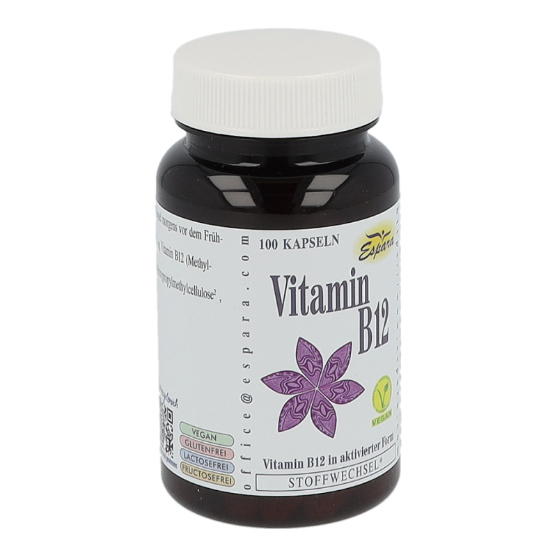 Vitamin B12 Kapseln enthalten neben dem Vitamin B12 unter anderem Methylcobalamin. In Kombination tragen die Inhaltsstoffe zu einer normalen Funktion des Nerven- und Immunsystems, sowie einer normalen Energieproduktion und Blutbildung bei. Außerdem reduzieren sie Müdigkeit und Ermüdung – alle Produkte von Espara mit hohem Rabatt bestellen!