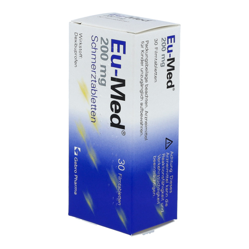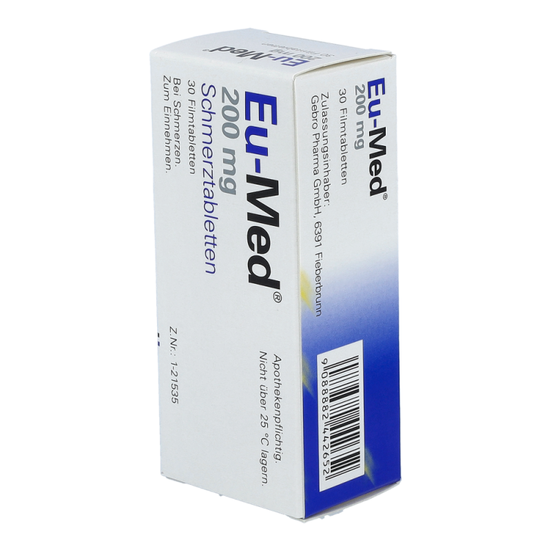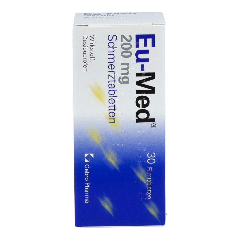 Eu-Med Schmerztabletten wirken schmerz- und entzündungshemmend sowie fiebersenkend. Sie werden zur Behandlung von akuten Schmerzzuständen, wie beispielsweise Zahnschmerzen, sowie von Fieber bei Erkältungskrankheiten eingesetzt.