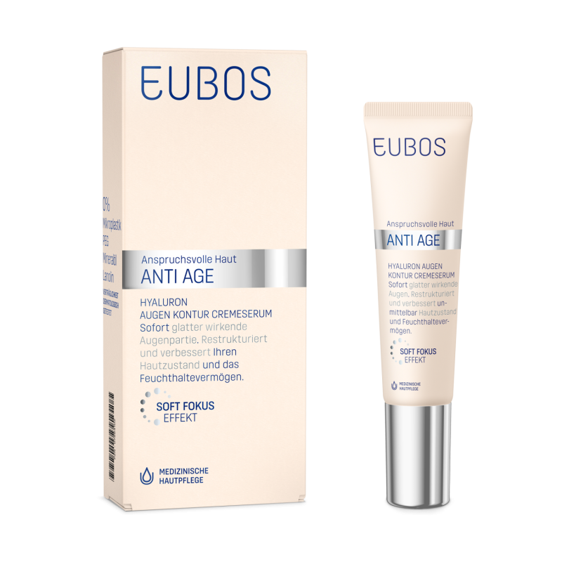 Eubos Hyaluron Augen Kontur CremeSerum pflegt wie eine reichhaltige Creme – hochaktiv wirksam wie ein Serum.