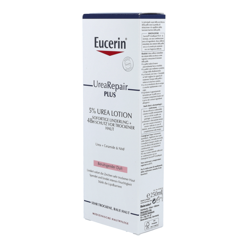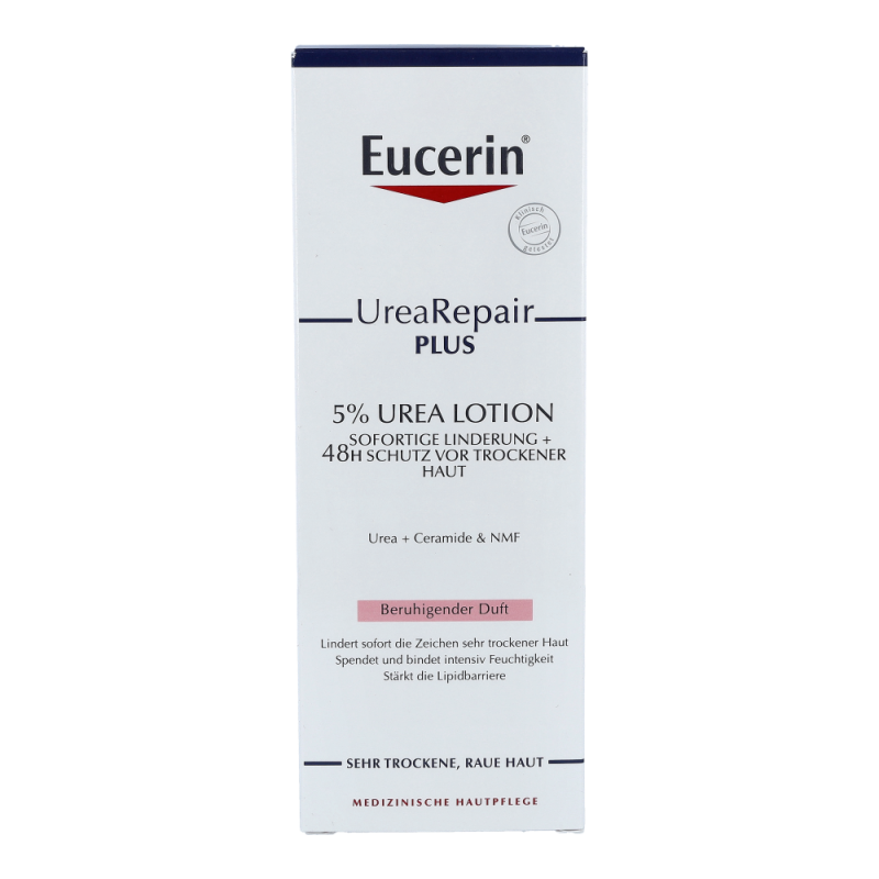 Eucerin Urea Repair Plus Lotion 5% mit beruhigendem Duft ist eine leichte, hoch wirksame Körperlotion, die die Hautbarriere stärkt. Die Haut wird langanhaltend vor Trockenheit geschützt.